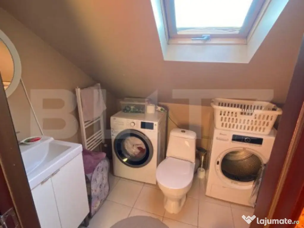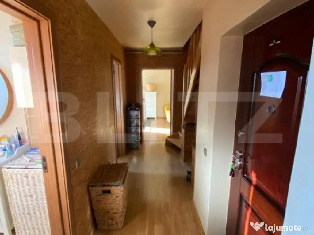 Vă prezentăm un apartament spațios, situat în Baciu, zona Petrom, cu o suprafață generoasă de 95 mp și compartimentare ideală: 4 camere, 2 băi și 2 holuri mari, care asigură confort și funcționalitate. Locuința se află la etajul 3, într-un imobil de 3 etaje, oferind intimitate și liniște. Beneficii suplimentare: Boxă de aproximativ 20 mp la demisol, cu înălțimea de 2,5 m, perfectă pentru depozitare. Parcare privată în curtea blocului, inclusă în preț. Orientare sudică, care garantează lumină naturală pe tot parcursul zilei și o panoramă spectaculoasă spre Pădurea Hoia. Apartamentul se vinde complet mobilat și utilat, fiind gata să te muți. Locația este excelentă, având acces rapid la stațiile de autobuz și magazine, ceea ce face ca totul să fie la îndemână. Pentru mai multe detalii, va asteptam la vizionare! Cod ofertă / ID BLITZ: P138101 Id intern: P138101 Confort: 1 Tip imobil: Bloc de apartamente Număr Băi: 2