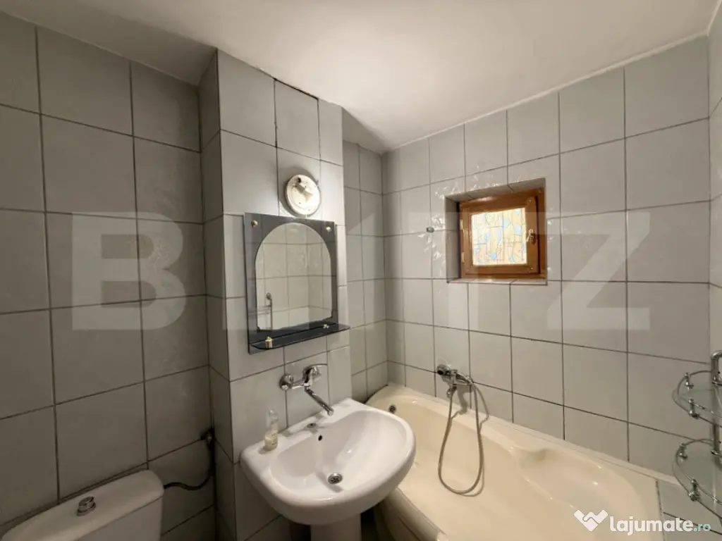 Blitz propune spre vânzare un apartament de 4 camere, cu o suprafață utilă de 97 mp, decomandat, la parterul unui bloc de 4 niveluri construit în 1990, în cartierul Rovine. Compartimentarea complet decomandată se prezintă în felul următor: un hol la intrare, din care se accesează bucătăria pe stânga și livingul în față, iar pe dreapta avem al doilea hol mare cu cele două băi pe capete și cele 3 dormitoare pe lateral. Imobilul beneficiază de următoarele: toate utilitățile, centrală pe gaz în condensație AC în fiecare cameră, mobilat și utilat complet, cu spații multe de depozitare fiind potrivit pentru spații de birouri. Apartamentul reprezintă o bună oportunitate pentru o familie numeroasă sau o firmă, fiind ușor accesibil și într-o zonă liniștită din oraș, bine conectată. Cod ofertă / ID BLITZ: P167452 Id intern: P167452 Confort: 1 Tip imobil: Bloc de apartamente Număr Băi: 2