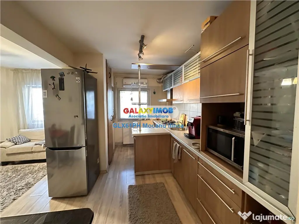 Inchiriere apartament 4 camere, in Ploiesti, zona 9 Mai, situat la parterul unui bloc de locuinte cu structura P 4, avand ca vecinatati si puncte de interes: Stadionul Astra, Sala Sporturilor, Profi, Mega Image, Gara de Vest, magazine, scoli, gradinite, statii pentru mijloace de transport in comun. Apartamentul este decomandat, are suprafata de 90 mp utili si este compartimentat in living open space cu bucataria, 3 dormitoare, 2 grupuri sanitare, hol. Incalzirea se realizeaza prin centrala termica proprie si climatizarea prin aparat de aer conditionat. Finisaje: gresie, faianta, parchet, tamplarie PVC cu geam termopan, usi interioare din lemn, usa exterioara metalica. Apartamentul se inchiriaza complet mobilat si utilat cu cu plita, cuptor electric, hota, frigider, masina de spalat vase, cafetiera, cuptor cu microunde, toaster, 4 televizoare cu ecran plat, masina de spalat rufe, uscator de rufe. Costul chiriei este de 615 euro lunar, o luna avans plus o luna garantie. Comison: 50%. Informatii eficienta energetica: Clasa energetica: B Consumul de energie primara: Indicele de emisii echivalent CO2: Consum de energie din surse regenerabile: Confort: 1 Tip imobil: Bloc de apartamente Număr Băi: 2