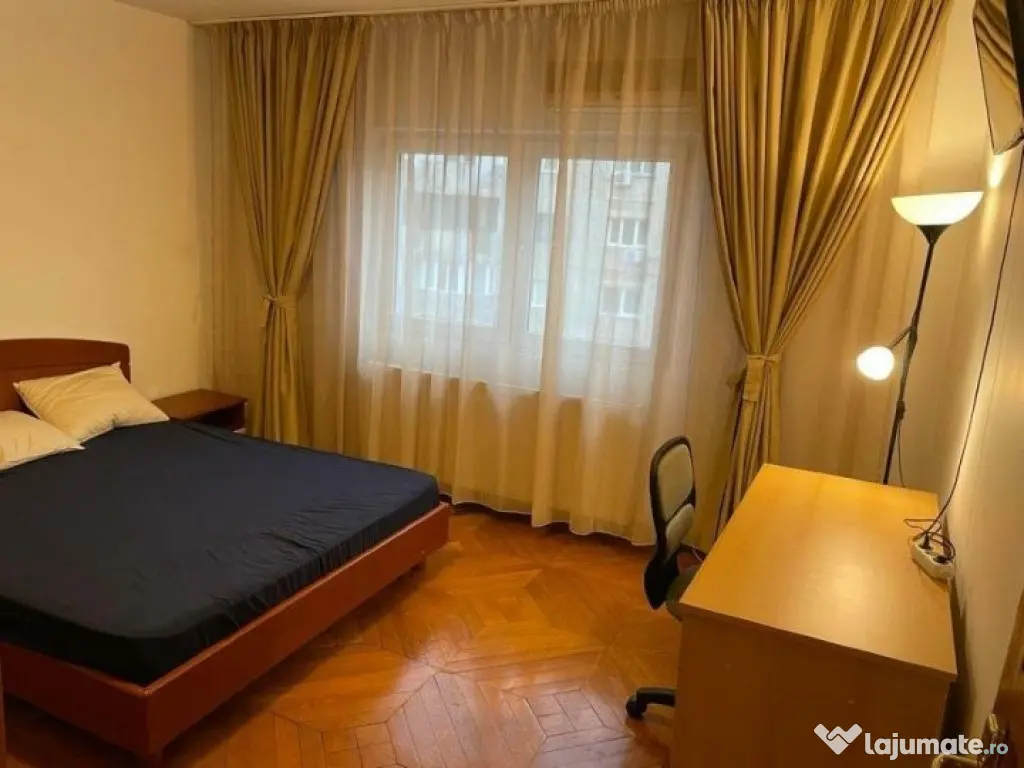 Apartament cu 4 camere in zona 13 Septembrie, colt cu Sebastian, decomandat, etaj 5 8, stare buna, bucatarie utilata complet, mobilat pentru locuit, contract ANAF, apropiere Marriott, Bld Unirii, Palatul Parlamentului, Izvor, Panduri. Apartamentul este liber, in stare buna, suprafata totala: 98 mp, internet, apometre, centrala proprie, usi lemn masiv, parchet lemn, 2 grupuri sanitare, 2 televizoare, 2 aparate aer conditionat, aragaz (nou), frigider (nou), cuptor microunde, masina de spalat (noua), balcon cu locuri de depozitare, termopan, cablu, usa intrare metalica, multiple spatii de depozitare pe hol si in dormitoare. Lift, Loc parcare contract ADP Confort: 1 Tip imobil: Bloc de apartamente