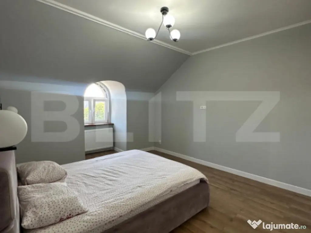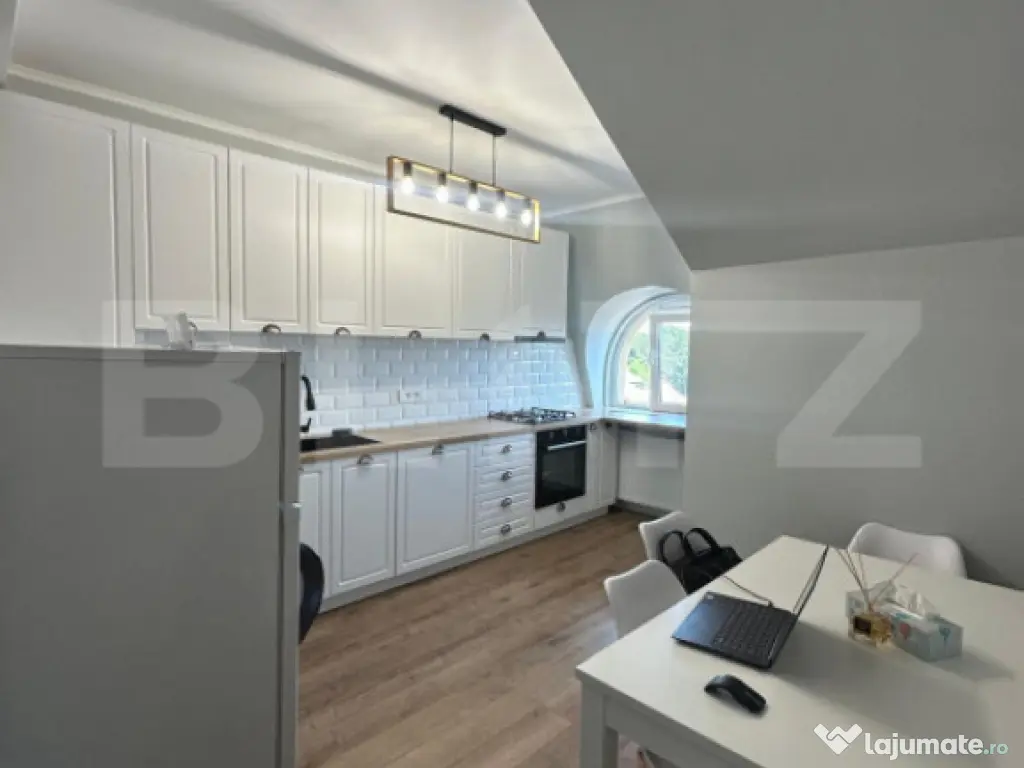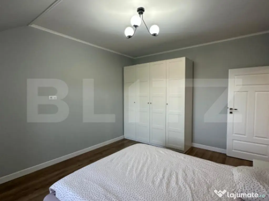 Blitz Imobiliare vă propune spre vânzare un apartament de 56 mp, situat la mansarda unei case tip P+1+M, într-una dintre cele mai liniștite și apreciate zone din Cluj-Napoca – Gruia, aproape de centrul orașului și cu panoramă superbă spre oraș. Apartamentul este complet mobilat și utilat modern, ideal pentru locuit sau pentru investiție în regim hotelier sau închiriere pe termen lung. Dotări și facilități: ✅ Centrală termică proprie ✅ Mașină de spălat haine cu uscător integrat ✅ Mașină de spălat vase ✅ Frigider, aragaz, cuptor electric, hotă ✅ Cuptor cu microunde ✅ Mobilier de calitate și electrocasnice moderne ✅ View spectaculos asupra orașului ???? Apartamentul se află într-o zonă verde și liniștită, departe de aglomerația urbană, dar la doar câteva minute de centru. Acces facil către transport public, parcuri, magazine și puncte de interes. ???? Ideal pentru cupluri, persoane singure sau investitori care caută o proprietate cu caracter și poziție excelentă în Cluj. ???? Preț competitiv pentru zona Gruia și dotările oferite! Programează o vizionare cu Blitz Imobiliare și descoperă confortul unei locuințe moderne într-o zonă de top a orașului! Cod ofertă / ID BLITZ: P147870 Id intern: P147870 Confort: 1 Tip imobil: Casă/Vilă Număr Băi: 1