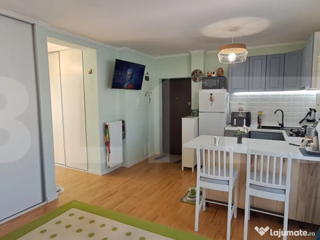 Blitz va propune spre vanzare un apartament de 44 de mp, la etajul 1 din 2, intr-un bloc din 2017, situat intr-o zona linistita in zona strazii Tineretului. Compartimentare: living cu bucatarie open space, dormitor, baie si doua balcoane. Apartamentul se vinde complet mobilat si utilat cu mobilier facut la comanda. Este situat intr-un bloc cu doar 2 etaje, la etajul 1, are parcare exterioara cu CF, intr-o curte privata cu acces doar pt cei din bloc. Accesul inspre si dinspre Cluj Napoca se face usor, un mare avantaj la orele cu cel mai mare trafic si este in acelasi timp si foarte aproape de viitoarea centura metropolitana de nord. Pentru mai multe detalii va stam la dispozitie. Programati-va acum o vizionare si convingeti-va singuri de calitatile apartamentului. Cod ofertă / ID BLITZ: P162109 Id intern: P162109 Confort: 1 Tip imobil: Bloc de apartamente Număr Băi: 1 Nr. locuri parcare: 1