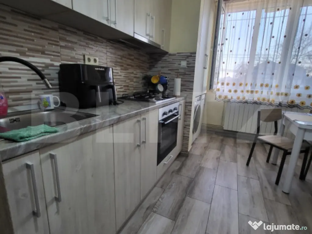 Blitz ofera la vanzare apartament cu 2 camere situat in zona Micro 3, in Turda. Acesta este situat la etajul 1 al unui imobil cu 4 nivele. Suprafata utila este de 48,43mp. Apartamentul este decomandat, compartimentarea se prezinta astfel: bucatarie, living, 1 dormitor, hol, 1 baie si balcon integrat in bucatarie. Dispune de centrala proprie, este izolat. Posibilitate loc de parcare de la primarie. Se vinde partial mobilat. De mentionat ca in proximiatea apartamentului avem scoala, magazine, farmacii, mijloace de transport in comun, fiind situat in zona linistita a orasului.