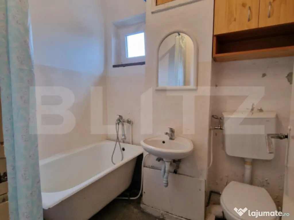 Blitz propune spre vânzare un apartament cu 2 camere, situat la etajul 3/4 al unui bloc reabilitat termic, într-o zonă foarte căutată, aproape de Casa Piraților, stațiile de autobuz, magazine si Mc Donalds. Proprietatea reprezintă o opțiune ideală de locuit sau ca investiție cu randament bun în regim de închiriere. Apartamentul are suprafata de 42mp si compartimentare semidecomandata astfel: hol, bucatarie separata, living, dormitor, baie cu geam si balcon. Apartamentul necesita renovare. Daca iti doresti un apartament cu potential intr-o zona accesibila, nu ezita sa ne contactezi! Cod ofertă / ID BLITZ: P159919 Id intern: P159919 Confort: 1 Tip imobil: Bloc de apartamente Număr Băi: 1