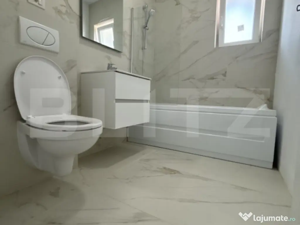 Blitz va propune spre vanzare un apartament cu suprafata utila de 52,9 mp, aflat intr-un ansamblu rezidential din zona Giroc, cu acces facil și aproape de punctele de interes. Apartamentul este situat laetajul 1 al unui imobil in regim P plus 3 E. Apartamentul este realizat folosind materiale de calitate. Acesta este complet decomandat și compartimentat astfel: hol, bucătărie închisă, living spațios în care puteti petrece clipe memorabile împreună cu familia și prietenii, un dormitor cu dressing și balcon privat, baie cu cada, spațiu suplimentar de depozitare și încă un balcon foarte spațios cu intrare din bucătărie și living.. Detine incalzire in pardoseala, centrala proprie pe gaz, clima, finisaje si obiecte sanitare de inalta calitate. De asemenea, apartamentul dispune de un loc de parcare inclus in CF. La prețul afișat se percepe ava în valoare de 21% (loc de parcare inclus) Va așteptăm cu drag sa stabiliți o vizionare! Cod ofertă / ID BLITZ: P143429 Id intern: P143429 Confort: 1 Tip imobil: Bloc de apartamente Număr Băi: 1