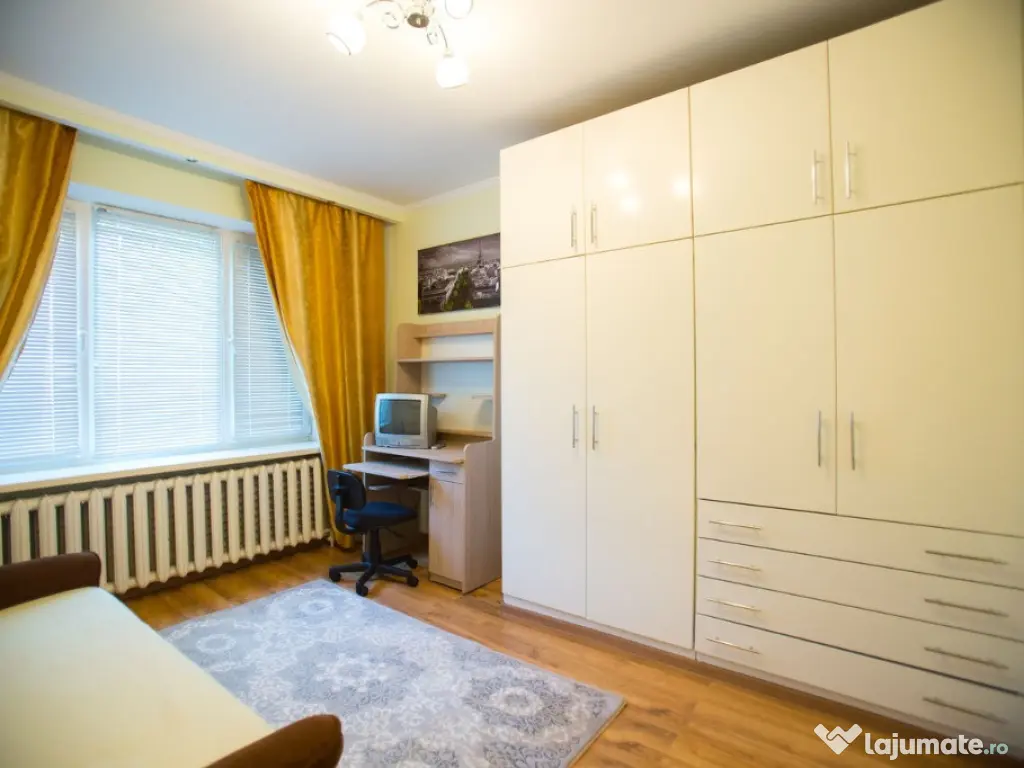 Ofer spre inchiriere aparatamnet cu doua camere, cu o suprafata de 50 mp, la etajul 4. Imobilul este amplasat in proximitatea pietii Gorjului si statiilor de autobuz. Confort: 1 Tip imobil: Bloc de apartamente