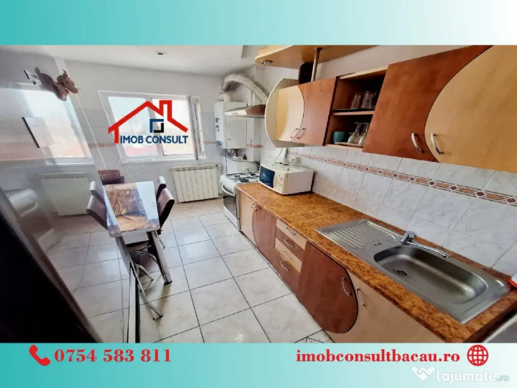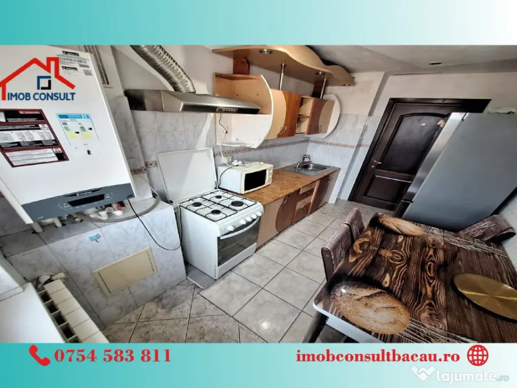 Imob Consult Bacău vă propune spre închiriere un apartament cu 2 camere, situat într-un bloc de apartamente din proximitatea Pieței Centrale, o zonă apreciată pentru accesul facil către magazine, instituții, mijloace de transport și puncte de interes urban. Locuința dispune de compartimentare decomandată, oferind confort și intimitate, fiind compusă din living, dormitor, bucătărie, baie cu geam pentru aerisire naturală, hol spațios și balcon închis. Apartamentul beneficiază de centrală termică proprie, tâmplărie PVC cu geam termopan și este situat într-un imobil prevăzut cu lift nou. Se închiriază complet mobilat și utilat, fiind pregătit pentru mutare imediată. Pentru detalii suplimentare și programarea unei vizionări, vă rugăm să ne contactați: • Cozmin: 0754 583 811; • Corina: 0740 288 297, De asemenea, vă așteptăm la sediul agenției Imob Consult Bacău, situat pe strada Banca Națională nr. 27, la intersecția cu Str. Neagoe Vodă, lângă Irish Pub. Echipa noastră vă stă la dispoziție pentru a vă oferi toate informațiile necesare și pentru a vă sprijini în alegerea locuinței potrivite. Vă stăm la dispoziție pentru a transforma această oportunitate în noul dumneavoastră cămin! Confort: 1 Tip imobil: Bloc de apartamente Număr Băi: 1