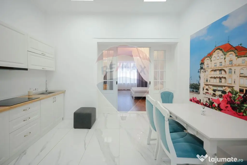 Vă propunem spre închiriere un apartament cu 2 camere, situat în zona ultracentrală a orașului Oradea, pe strada Episcop Mihai Pavel, nr. 1 la doar 50 de metri de Piața Unirii.