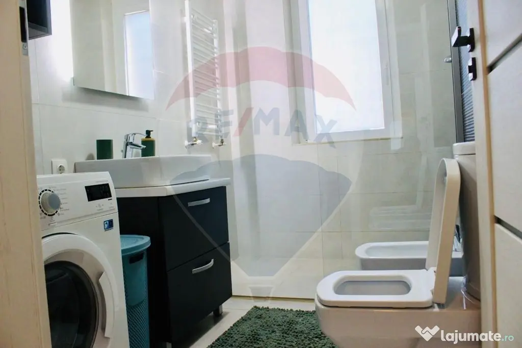 Apartamentul are centrala termica proprie npe gaz si vinde complet mobilat și utilat , fiind inclusă o mașină de spălat rufe, AC, TV, interfon. Bucătăria este dotată cu frigider, hotă, plită de gătit, mobilierul și electrocasnicele. Canapeaua din zona de living este extensibilă .