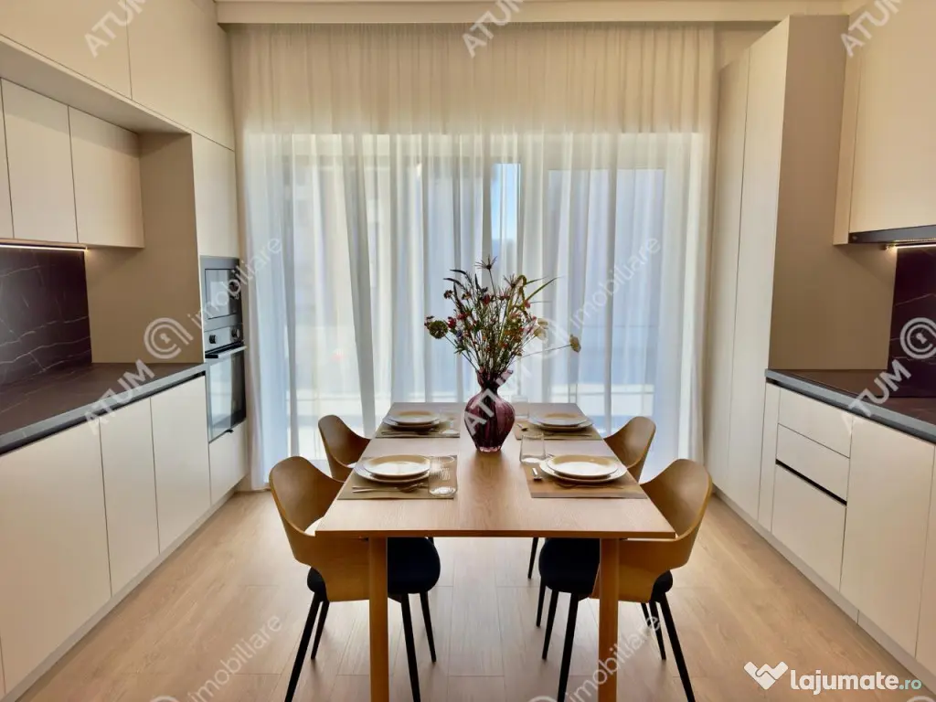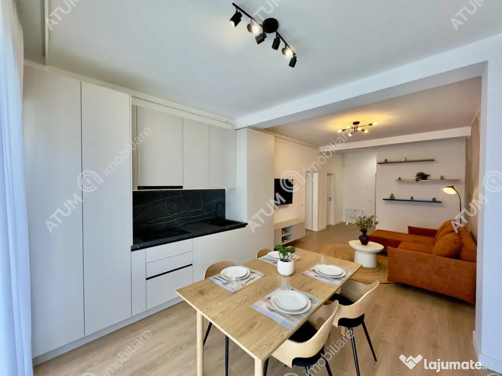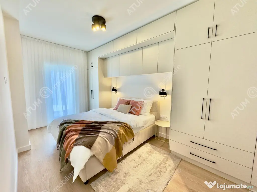 De vanzare in zona Industriala Vest apartament cu 2 camere decomandate, baie si 2 balcoane, orientat catre sud, pozitionat la etajul 1 din 2 al unui bloc tip vila compus din Parter 2Etaje si doar 2 apartamente pe nivel, ce dispune de locuri proprii de parcare, acces securizat, izolatie exterioara si acoperis din tigla. Apartamentul are suprafata utila de 52 mp. Apartamentul dispune de multiple spatii pentru depozitare mascate si incorporate. Pe hol se afla un cuier si un spatiu generos pentru depozitare, ambele incastrate in perete. Amenajarile interioare au fost facute in anul 2025, imediat dupa finalizarea constructiei vilei, parchet de 10 mm, usi interioare de lemn, obiecte sanitare, zugraveli in lavabila alba si culori neutre. Apartamentul este complet mobilat si utilat cu mobilier de calitate facut pe comanda din MDF si electrocasnice incorporate ( cuptor electric, plita electrica, hota, masina de spalat vase, frigider, masina de spalat rufe, televizoare ). Locuinta dispune de dotari moderne precum usa metalica de acces antiefractie placata cu panou MDF, centrala termica proprie pe gaz cu termostat wireless si incalzire in pardoseala, tamplarie PVC cu geam termopan cu 5 camere si 3 foi, instalatie electrica din cupru trasa prin coperx cu tablou general si sigurante pentru consumatorii de putere. Parcarea se face pe locul propriu amenajat locuintei. Apartamentul este situat intr-o zona cu acces rapid catre centrul orasului Sibiu, oferind icirc;n acelasi timp o priveliste incantatoare asupra imprejurimilor. Valoarea de achizitie este de 135.000 euro TVA inclus, putand fi achizitionat si prin intermediul unui credit bancar. ID intern: 3374. Confort: 1 sporit Tip imobil: Bloc de apartamente Număr Băi: 1 Posibilitate parcare: Da Nr. locuri parcare: 1