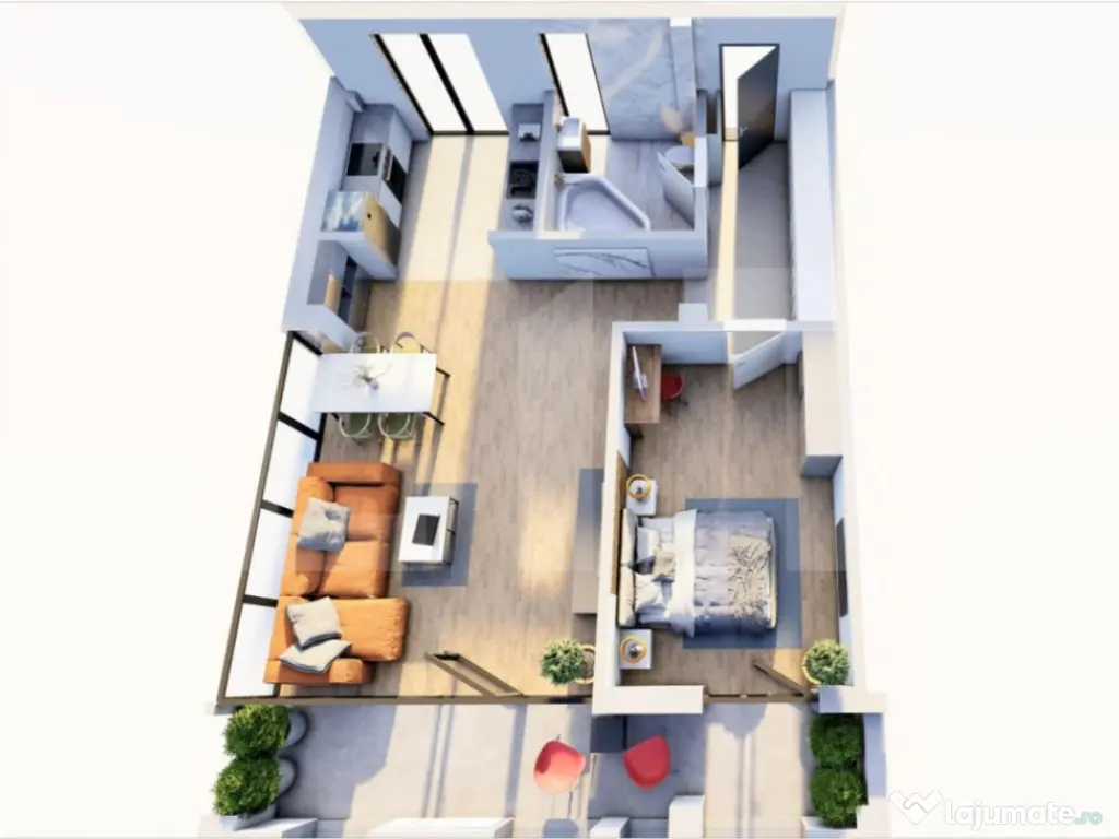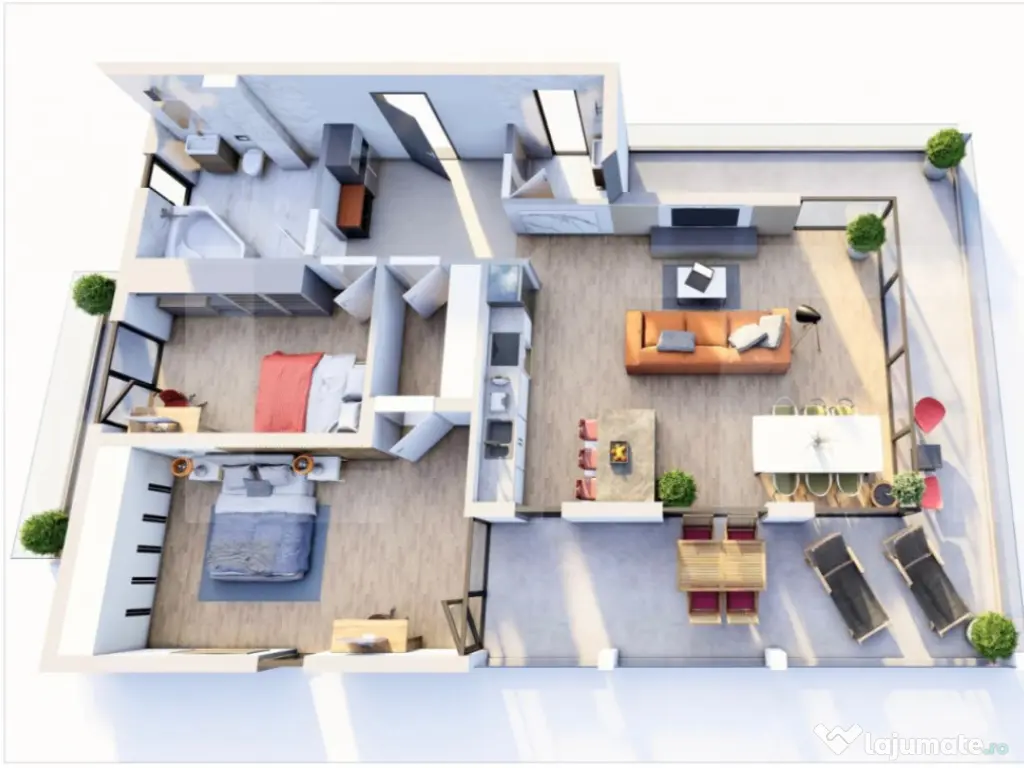 Apartament cu 2 camere, etaj intermediar, terasa, Braytim