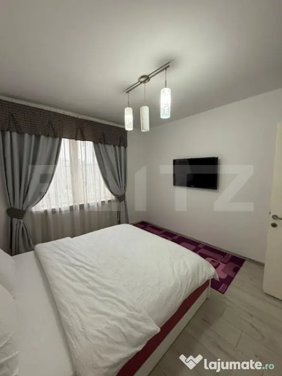 Apartamentul se vinde complet utilat si mobilat, detine centrala termica, calorifere, geamuri termopan si usa metalica la intrare.