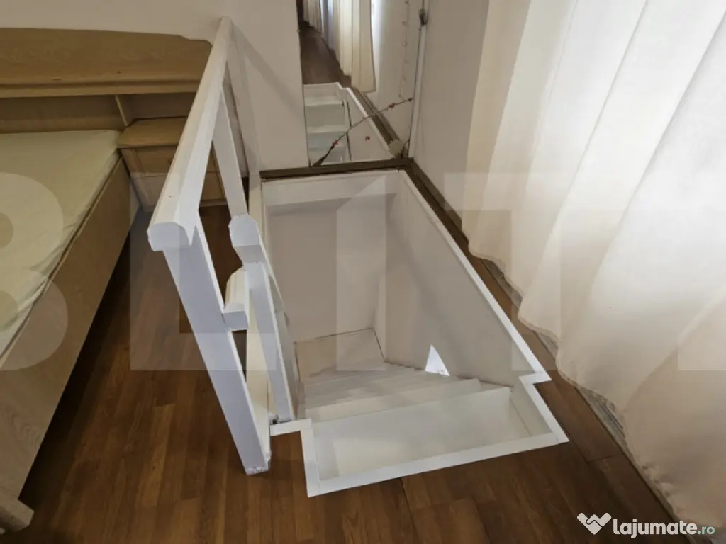 Blitz vă propune un apartament foarte spațios, dispus pe două niveluri cu scară interioară, într-o zonă excelentă, imediat lângă Iuliu Maniu. Se află la parter, într-o curte comună liniștită, unde sunt foarte puțini proprietari – perfect pentru cei care își doresc intimitate și liniște în oraș. Jos găsești o sufragerie confortabilă, o bucătărie practică și o baie, iar la etaj, un dormitor foarte mare cu spațiu generos și a doua baie. În acte sunt trecuți aproximativ 30 mp și pod, dar podul este acum complet mansardat, oferind un dormitor unic ca atmosferă. Beneficiezi și de o boxă trecută în CF pentru depozitare suplimentară. Poziția excelentă aduce aproape toate beneficiile urbane: centre comerciale, săli de sport, cafenele, restaurante, școli, grădinițe, universități și transport în comun. Un spațiu cu personalitate, modernizat integral, unde fiecare detaliu a fost gândit pentru confortul traiului de zi cu zi în inima orașului. Cod ofertă / ID BLITZ: P153305 Id intern: P153305 Confort: 1 Tip imobil: Bloc de apartamente Număr Băi: 2