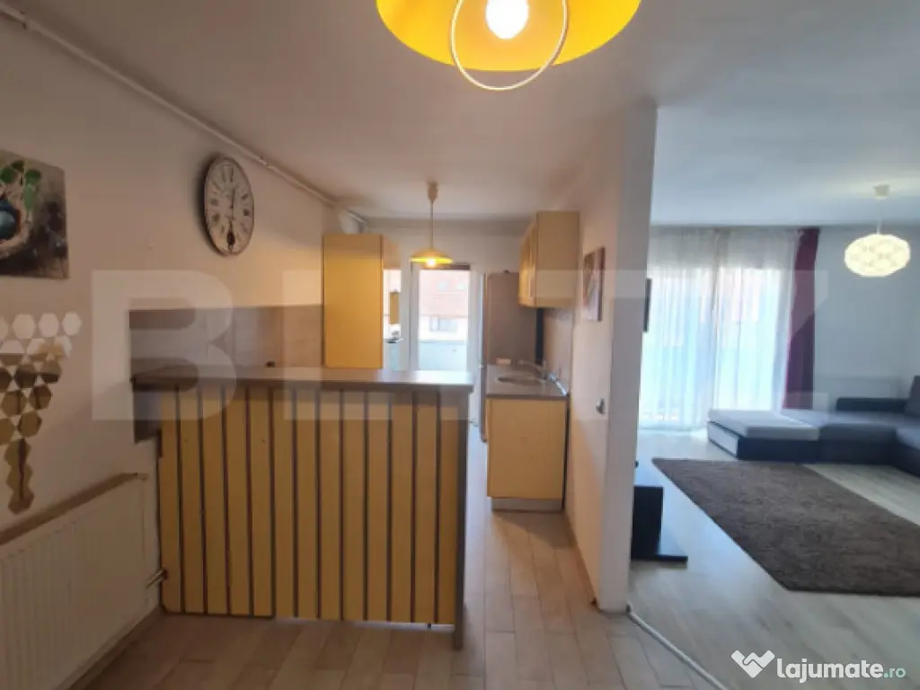 Apartamentul se afla amplasat intr-un bloc din caramida izolat termic la exterior, dispune de centrala termica proprie, tamplarie PVC cu geam termopan siu este compus din: hol, bucatarie, living, dormitor, baie si balcon. Locul de parcare este inclus in pretul afisat.