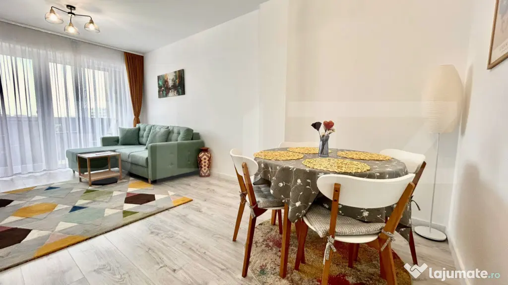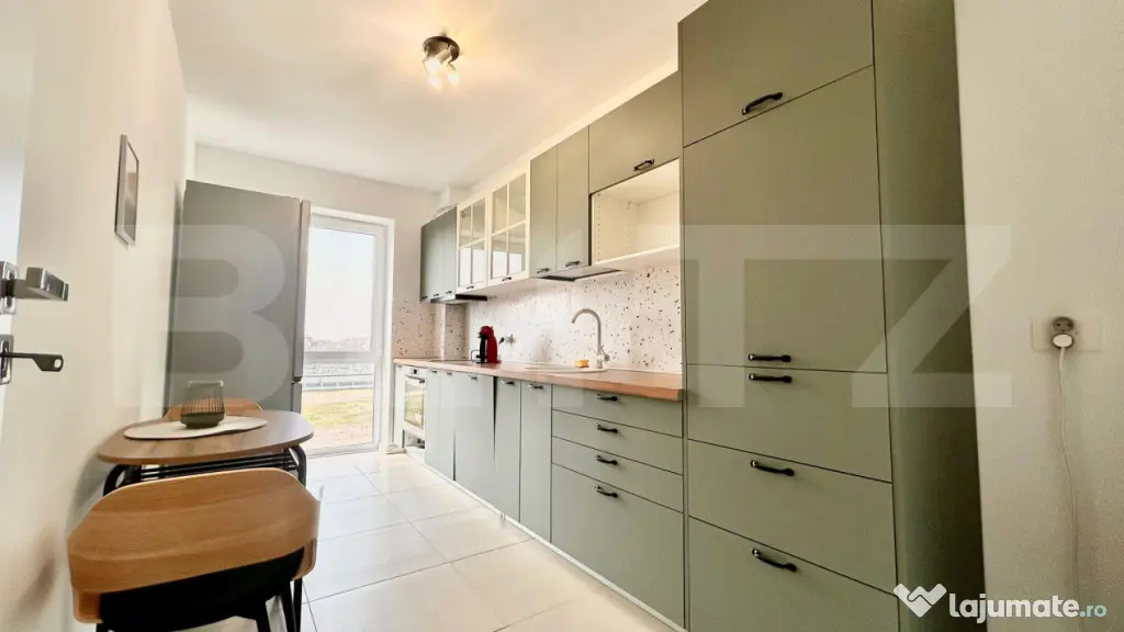 Compartimentare: Hol de acces, bucătărie, baie, dormitor matrimonial, living și balcon deschis. Imobilul se află la prima utilizare, prezentând finisaje din gama premium.