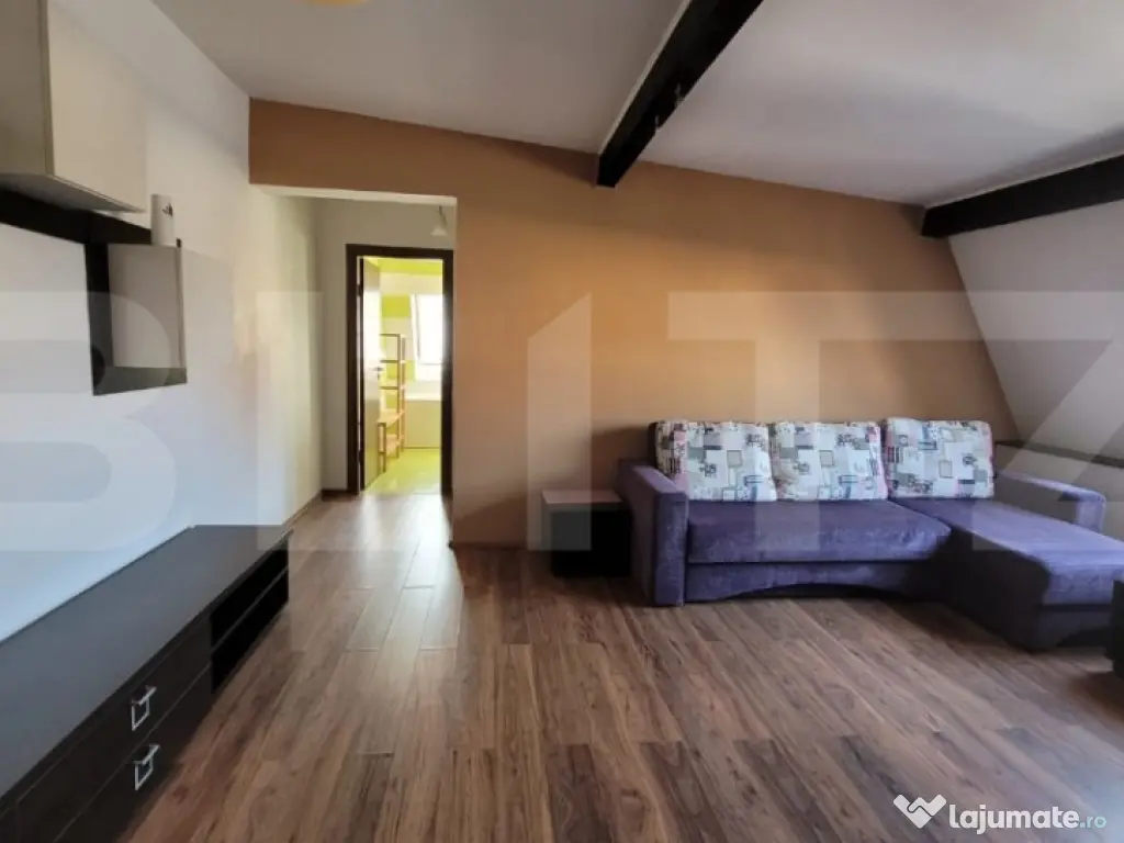 Blitz va propune spre vanzare un apartament de 55 de mp utili, cu 2 camere ,semidecomandat, in zona Muzeul Apei, la etajul 3 din 3 (mansarda inalta). Este compus din: hol la intrare cu dressing, bucatarie cu living open space, dormitor si baie cu geam. Este mobilat si utilat, are centrala proprie, frigider, masina de spalat ,aparat de aer conditionat. Imobilul detine loc de parcare in curtea blocului,cu cota parte. Ideal atat pentru locuinta proprie dar si pentru investitie . Pretul este negociabil . ????Locatie foarte buna, cu acces usor atat spre Cluj Napoca, cat si spre autostrada. Pentru mai multe detalii si vizionari, nu ezitati sa ne contactati! Cod ofertă / ID BLITZ: P154923 Id intern: P154923 Confort: 1 Tip imobil: Bloc de apartamente Număr Băi: 1 Nr. locuri parcare: 1