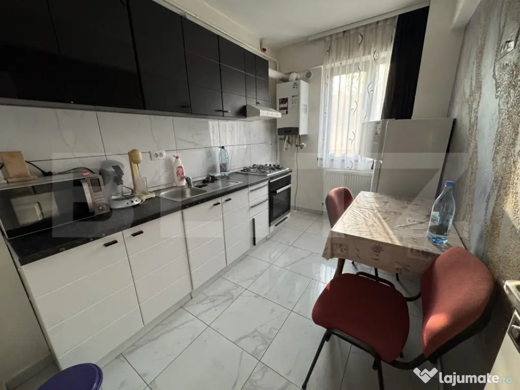 Blitz vă propune spre vânzare un apartament cu 2 camere, semidecomandat, situat în Păun, o zonă potrivită atât pentru locuit, cât și pentru investiție. Locuința are o suprafață utilă de 54 mp, la care se adaugă un balcon de 6 mp, oferind un spațiu bine compartimentat și funcțional pentru un cuplu, o persoană singură sau pentru închiriere. Apartamentul este poziționat la etajul 1 din 5, un etaj foarte bun din punct de vedere al confortului, într-un bloc construit în 2018 care beneficiază de izolație exterioară, aspect important pentru eficiență termică și costuri de întreținere mai bune. Imobilul se vinde mobilat și utilat complet, fiind o opțiune practică pentru cei care își doresc o proprietate gata de mutare sau pentru investitorii care caută un apartament ce poate fi introdus rapid în circuitul de închiriere. Datorită amplasării în zona Păun, proprietatea oferă o zonă de liniște, aer curat, fiind o alegere inspirată pentru: -locuire personală -cupluri tinere -investiție / închiriere Vă așteptăm la vizionare!