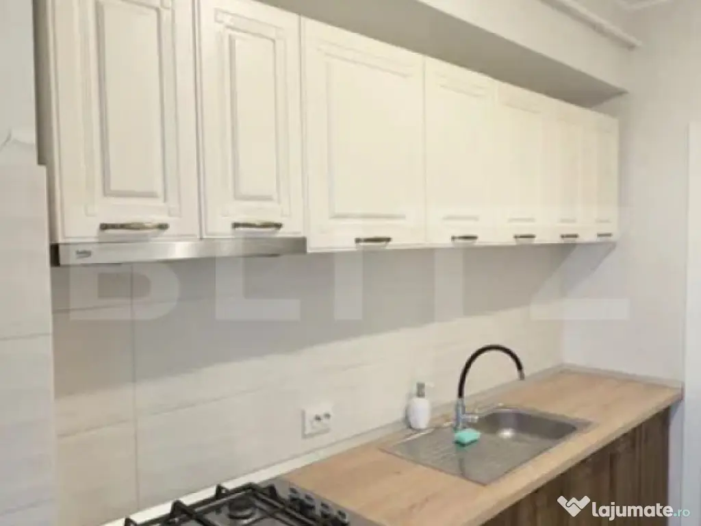 Blitz vă propune spre închiriere un apartament cu 2 camere, situat în Complexul Royal Town Copou, într-un ansamblu rezidențial modern, cu acces facil către puncte de interes. Apartamentul este complet mobilat și utilat, cu mobilier modern, oferind un nivel ridicat de confort. Caracteristici principale: - 2 camere - Etaj 7 - Centrală termică proprie - Încălzire în pardoseală - Parcare subterană inclusă Alte beneficii: - Mega Image situat chiar la intrarea în complex - Ansamblu rezidențial modern Condiții: - Nu se acceptă animale de companie - Destinat persoanelor salariate Preț: 500 euro/lună + 500 euro garanție O proprietate ideală pentru cei care își doresc confort modern, locație premium și facilități complete în zona Copou. Cod ofertă / ID BLITZ: P162195 Id intern: P162195 Confort: 1 Tip imobil: Bloc de apartamente Număr Băi: 1 Nr. locuri parcare: 1