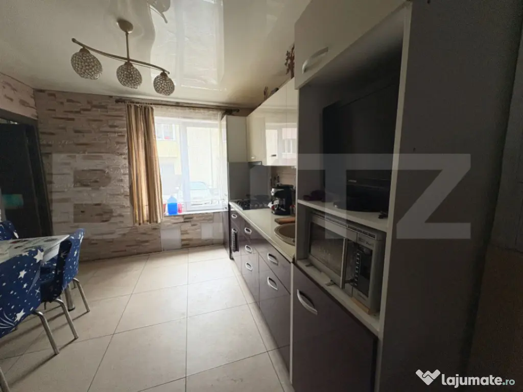 Compartimentare: hol, un dormitor spatios, living, bucatarie inchisa, baie cu geam, o debara practica care ofera un spatiu extra pentru depozitare si un balcon generos de 8 mp. Beneficiază de încălzire în pardoseală. Apartamentul se vinde partial mobilat, renovat in anul 2022, doar baia nu a fost renovata. Parcare exterioara chiar langa bloc-cota parte. Accesul inspre si dinspre Cluj Napoca se face usor, un mare avantaj la orele cu cel mai mare trafic.