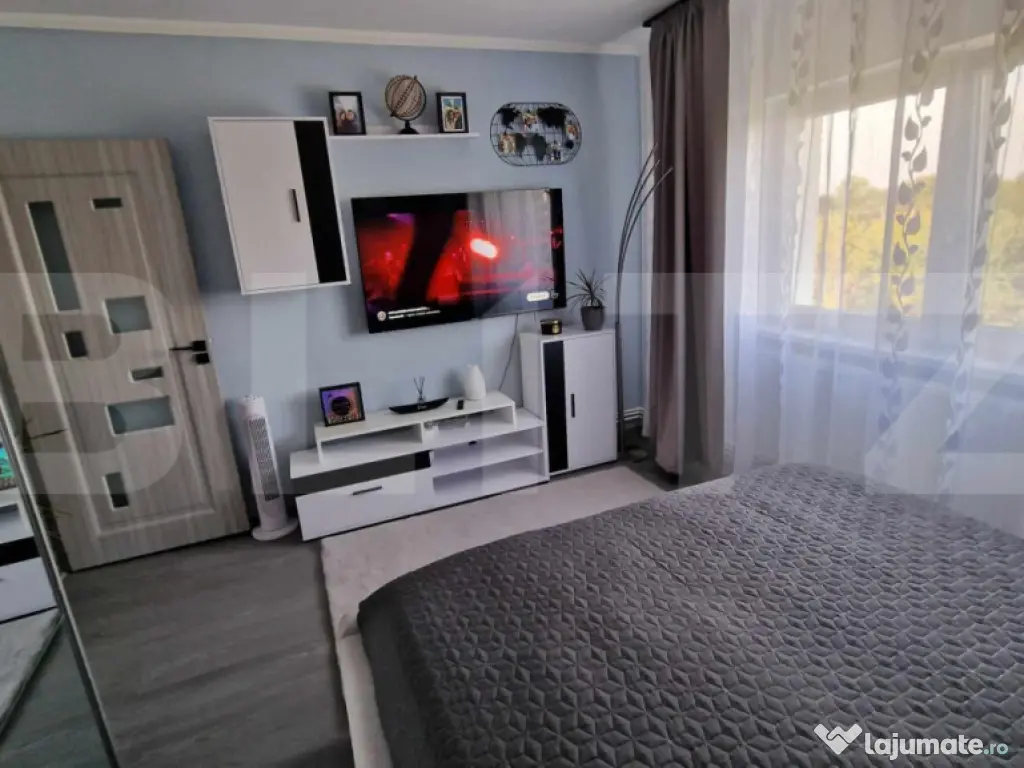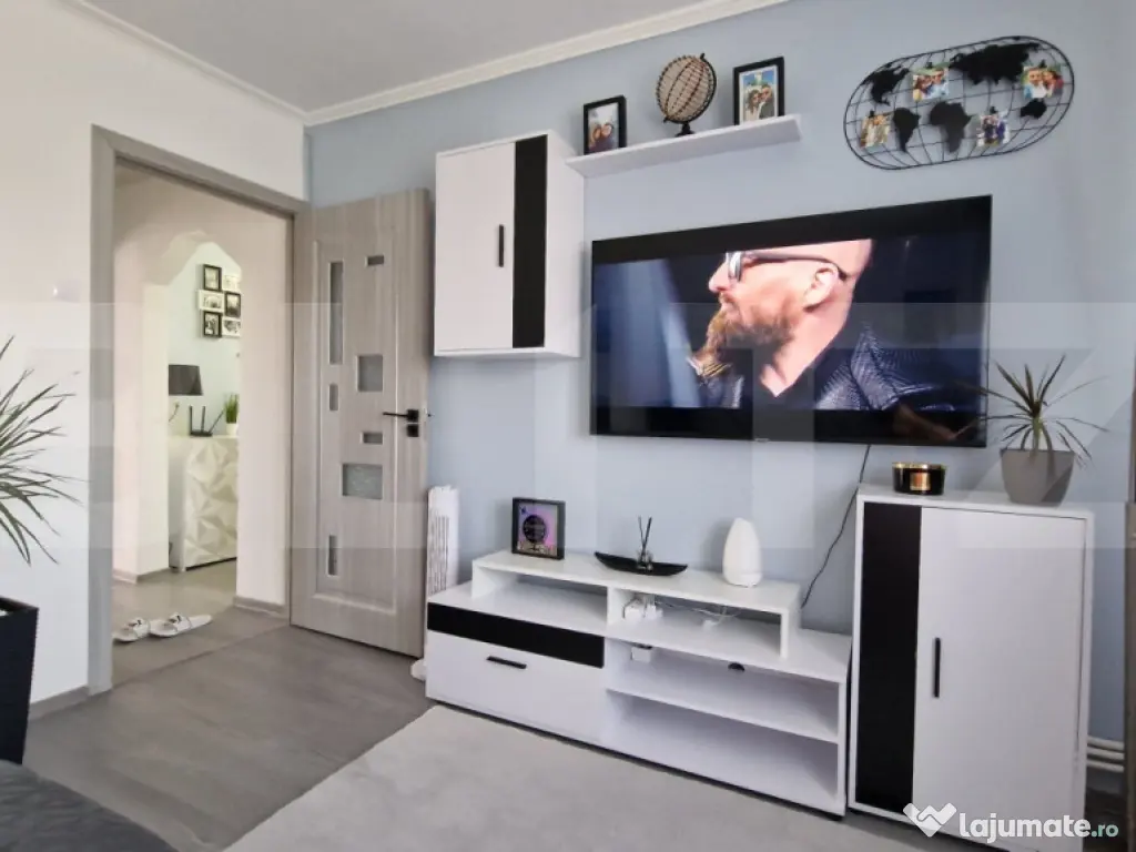 Dacă ești în căutarea unui apartament modern, spațios și gata de mutat, Blitz îți propune o locuință ce îmbină confortul, funcționalitatea și accesibilitatea într-un mod echilibrat. Acest apartament cu 2 camere, decomandat, are o suprafață generoasă de 63 mp utili, fiind ideal atât pentru un cuplu tânăr, cât și pentru o familie care își dorește un spațiu aerisit, bine compartimentat.Locuința a fost renovată complet în anul 2024. Practic, totul este nou: de la instalația electrică schimbată integral, la finisajele moderne și durabile alese cu grijă. Sistemul de încălzire este complet refăcut – beneficiază de centrală termică proprie și calorifere noi, pentru un control eficient al temperaturii și un consum redus de energiei plus, apartamentul este complet mobilat, cu mobilier de calitate, modern și practic, gândit pentru a optimiza spațiul și a oferi un plus de confort. Ferestrele sunt dotate cu termopane, care asigură o izolare termică și fonică foarte bună, contribuind la un ambient liniștit și plăcut. Un alt avantaj important îl reprezintă cele două balcoane – perfecte pentru relaxare, pentru un mic colț verde cu plante sau pentru depozitare suplimentară. Întregul apartament este luminos, bine orientat, cu ferestre mari care lasă lumina naturală să pătrundă în fiecare colț. Apartamentul se află într-o zonă foarte convenabilă, aproape de Auchan ,ideal pentru cei care vor să se mute imediat, fără grija renovărilor sau a investițiilor suplimentare. Cod ofertă / ID BLITZ: P150862 Id intern: P150862 Confort: 1 Tip imobil: Bloc de apartamente Număr Băi: 1