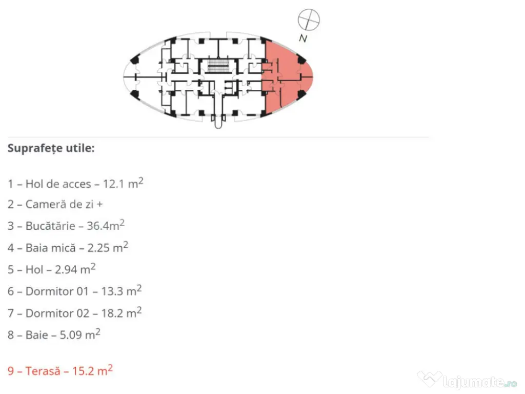 Apartament cu 3 camere, 2 bai, 90 mp, terasa 15 mp, imobil n
