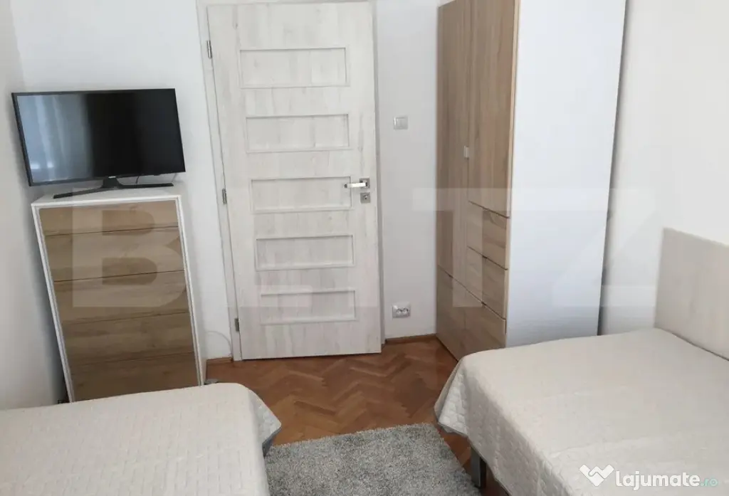 Locuința este poziționată la etajul 3 al unui imobil cu 8 etaje, izolat termic, și se remarcă prin compartimentarea practică și spațiile generoase. Apartamentul este complet mobilat și utilat, inclusiv cu mașină de spălat vase, și dispune de centrală termică proprie, oferind astfel confort termic pe tot parcursul anului.