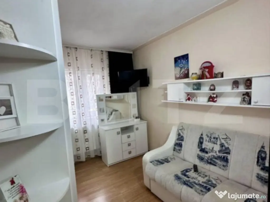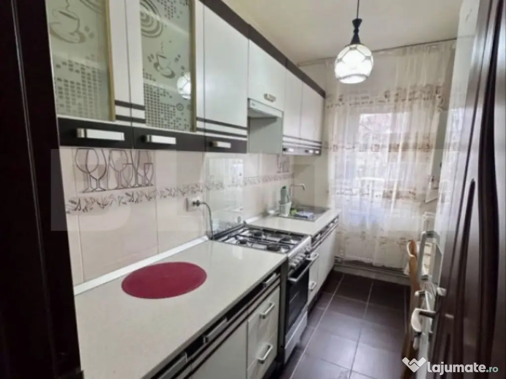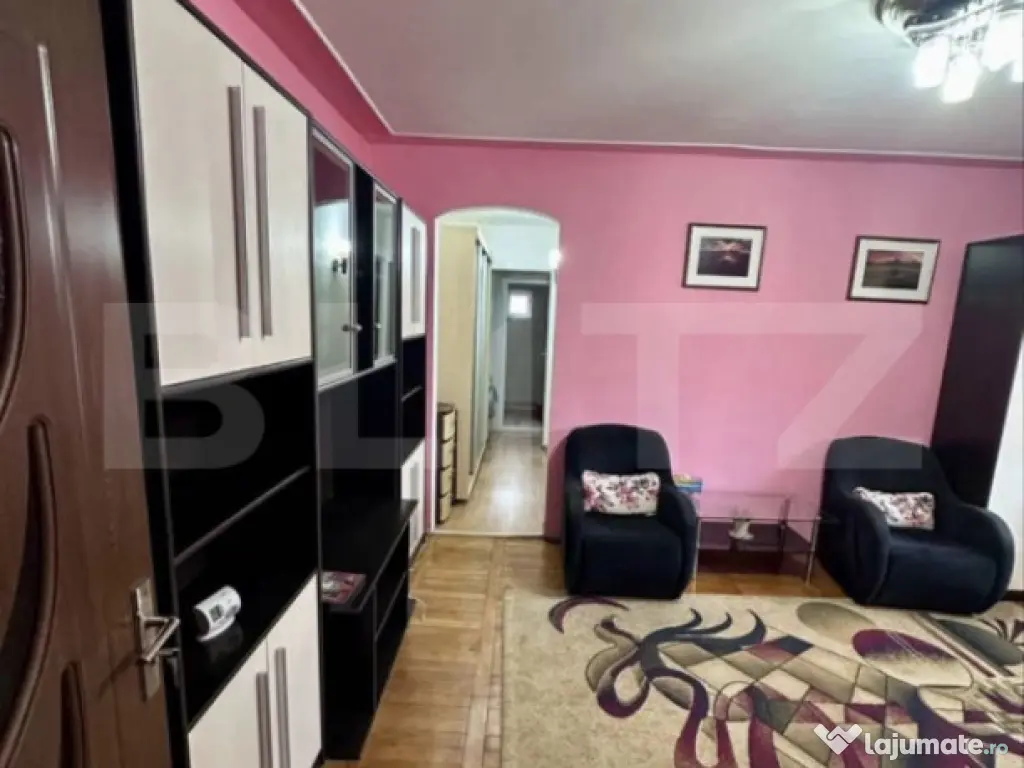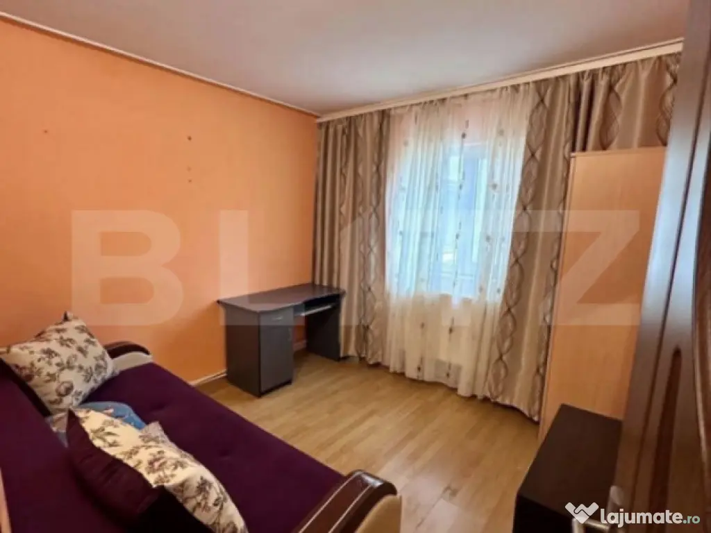 Blitz vă oferă un apartament cu 3 camere de închiriat, situat în zona Carrefour Felicia – Bularga, într-o zonă liniștită, la aproximativ 20 m de bulevardul principal. Detalii locuință: - Apartament cu 3 camere - Suprafață utilă: 60 mp - Parter din 6 etaje - Complet mobilat și utilat - Apartament foarte călduros, cu un singur perete exterior - Grădină a blocului spațioasă, cu acces din sufragerie - Baie și bucătărie complet renovate anul acesta - Disponibil începând cu 15 ianuarie Dotări & electrocasnice: - Centrală termică proprie - Frigider - Cuptor cu microunde - Mașină de spălat rufe - Televizor Localizare & facilități: - Zonă extrem de liniștită - Aproape de Carrefour Felicia - 10 minute până la universități - Acces rapid către Palas Mall și Iulius Mall Chirie & condiții: - Preț: 450 euro - Garanție: 450 euro - Se dorește închiriere pe termen lung Cod ofertă / ID BLITZ: P161114 Id intern: P161114 Confort: 1 Tip imobil: Bloc de apartamente Număr Băi: 1