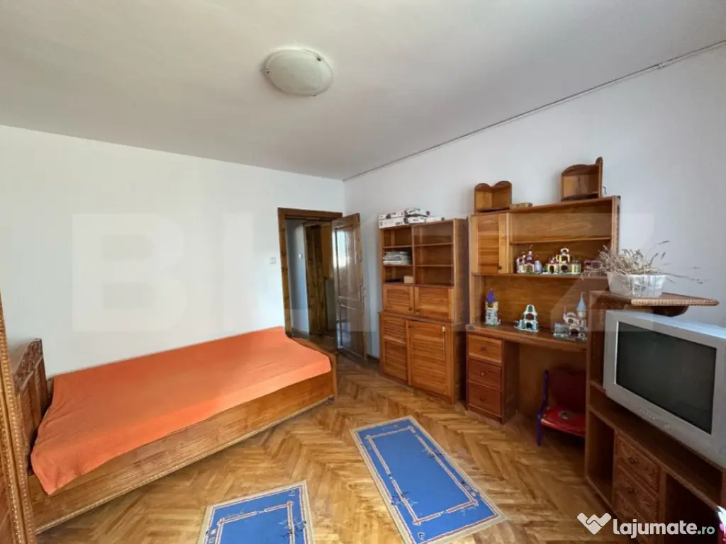 BLITZ vă prezintă un apartament decomandat cu 3 camere în Deva. Este alegerea ideală pentru cei care caută un cămin spațios și confortabil. Camerele sunt generoase și primitoare, fiecare oferind un spațiu suficient pentru a te simți acasă. Apartamentul dispune de două băi, ceea ce adaugă un plus de confort pentru întreaga familie, iar bucătăria este amenajată eficient, pentru a face gătitul o activitate plăcută. Un detaliu important este balconul închis, unde poți petrece momente de relaxare, chiar și în zilele mai reci. De asemenea, centrala termică și aerul condiționat îți asigură o temperatură plăcută indiferent de sezon. Siguranța locuinței este garantată de camerele de supraveghere amplasate în scara blocului, iar ușa de la intrare, din lemn masiv, completează atmosfera caldă și primitoare a apartamentului. Un alt avantaj semnificativ este uscătoria, situată la doar câțiva pași de apartament, la același etaj, chiar lângă ușa acestuia. Aceasta oferă o soluție practică pentru a-ți usca hainele fără a mai ieși din bloc. Situat într-o zonă excelentă, acest apartament te așteaptă să-l vizitezi! Cod ofertă / ID BLITZ: P140187 Id intern: P140187 Confort: 1 Tip imobil: Bloc de apartamente Număr Băi: 2