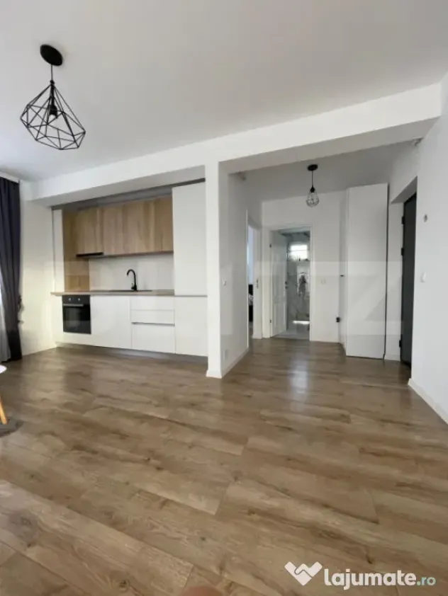 Compartimentarea se prezinta astfel: bucataria open space cu livingul, hol, doua dormitoare, o baie si un balcon.