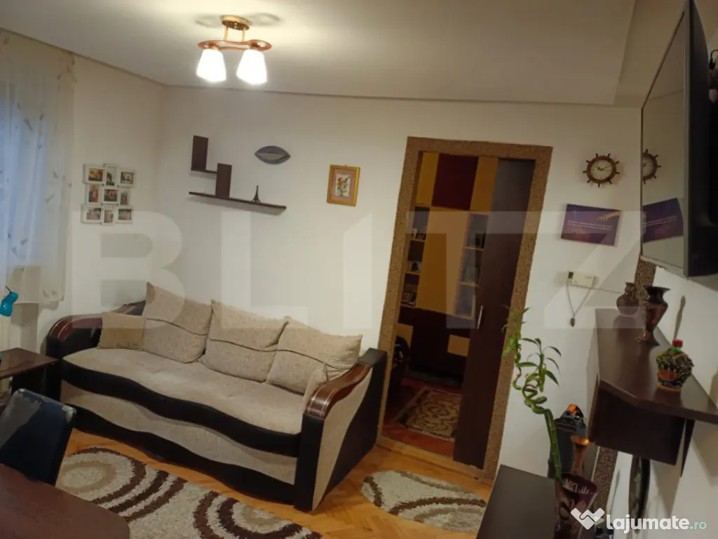 Compartimentare eficientă: living + 2 dormitoare + bucătărie + baie cu ferestră (pentru lumină naturală și aerisire).