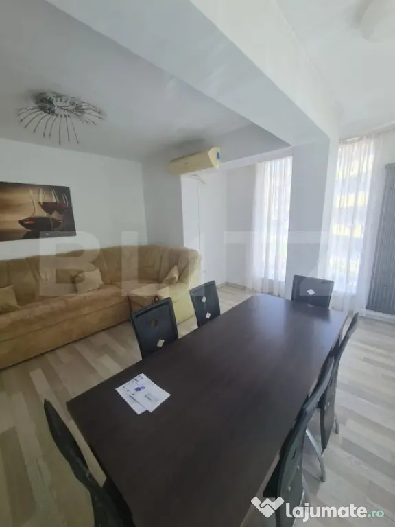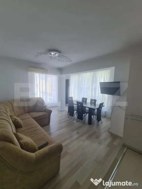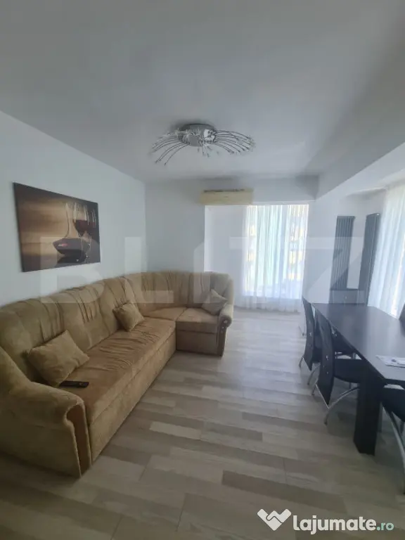De vanzare apartament semidecomandat si loc de parcare. Apartamentul este amplsat la etajul 1 al unui bloc din caramida izolat termic la exterior, dispune de centrala termica proprie, tamplarie PVC cu geam termopan, se preda mobilat si utilat si este compus din: hol, living open space cu bucataria, 2 dormitoare, baie, balcon si debara. Locul de parcare este inclus in pretul afisat. Pentru mai multe detalii nu ezitati sa ne contactati.