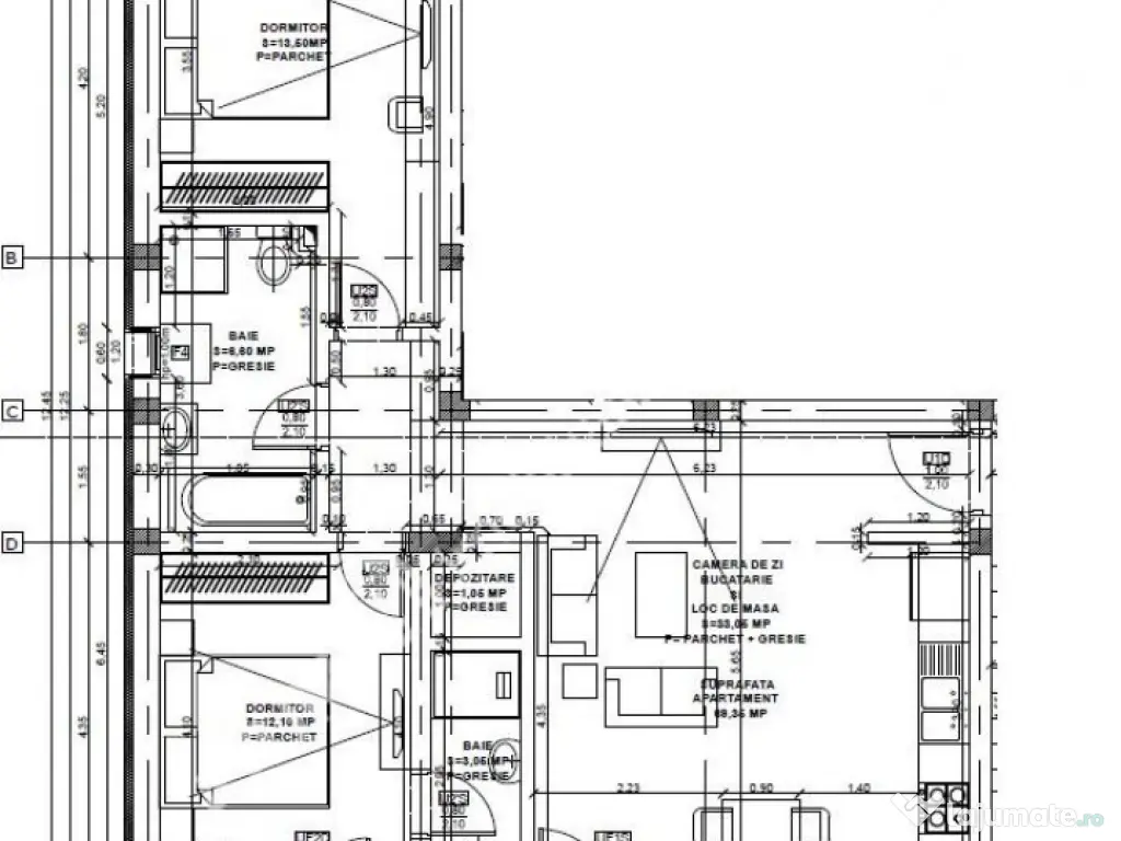 Comision 0! De vanzare apartament de 3 camere decomandate cu 2 bai, balcon si loc propriu de parcare, datorita vederii mixte acesta are orienta EST-VEST si este insorit pe toata perioada zilei, pozitionat la etajul intermediar 1 intr-un imobil cu doar 3 nivele si doar 3 apartamente pe palier, localizat in zona Doamna Stanca. Apartamentul are suprafata utila de 69,35 mp, acesta fiind compus din camera de zi tip open space cu bucataria de 33.05 mp, cele 2 dormitoare dintre care cel matrimonial de 12.05 mp care detine si propria baie de 3.06 mp dotata cu dus, iar dormitorul secundar 13.50 mp destinat copilului sau oaspetilor, baia principala de 6.80 mp si o debara de 1.05 mp. Separat de suprafata utila mai detine si un balcon de aproximativ 7.80 mp in care accesul se face atat din dormitorul matrimonial cat si din camera de zi. In valoarea de achizitie este inclus si un loc de parcare amenajat, delimitat si inscriptionat, pozitionat in fata imobilului. Ansamblul rezidential a sa aiba aleile pietonale, auto si spatiile verzi vor fi complet amenjate, locul de joaca pentru copii prevazut cu nisip, topogane si leagane, locurile de parcare special amenajate, delimitate, iluminate si inscriptionate ca atare. Casa scarii se va preda complet amenajata cu: pereti tencuiti si zugraviti cu vopsea lavabila, plafoniere cu senzor de miscare, pardoseala placata cu gresie antiderapanta, cutii postale, interfon la intrare, usa de acces din PVC cu inchidere electromagnetica. Apartamentul se preda la stadiul de alb si dispune de urmatoarele dotari si finisaje: -Usa de metal anti-efractie la intrarea in apartament placata cu MDF; -Pereti tencuiti ( tencuiala pe baza de var-ciment ), gletuiti si zugraviti cu lavabila alba in 2 straturi; -Pardoseli amenajate cu sapa autonivelanta semiuscata elicopterizata pregatite pentru parchet-gresie; -Tamplarie PVC marca Sallamander cu 5 camere si 3 foi de sticla cu Low-E, glafuri exterioare de aluminiu si PVC interior; -Centrala proprie pe gaz marca Bosch in condensare si incalzire in pardoseala; -Distribuitor pentru instalatia de incalzire; - Racorduri apa-canal in bucatarie si bai; - Racord gaz metan la bucatarie; -Instalatii electrice trase pe pozitie cu tablou general si sigurante pentru consumatorii de putere; -Instalatii pentru TV si internet trase pe pozitie. Valoarea apartamentului la plata unui avans de 15% este de 135.520 TVA Inclus, se poate achizitiona si prin credit ipotecar. ID intern: 2867. Confort: 1 Tip imobil: Bloc de apartamente Număr Băi: 2 Posibilitate parcare: Da Nr. locuri parcare: 1