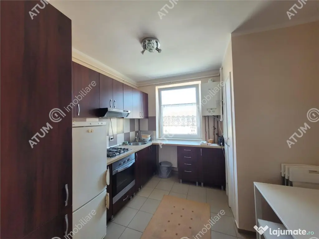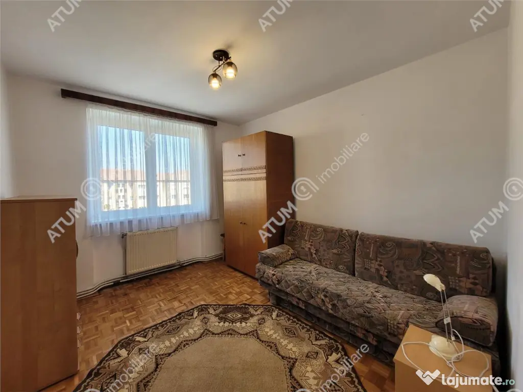 Va oferim spre inchiriere apartament cu 3 camere si balcon in zona Rahovei, una dintre cele mai cautate zone din Sibiu. Apartamentul are suprafata utila de 63 mp care sunt compartimentati semidecomandat in bucatarie inchisa, living, hol, doua dormitoare, baie, camare si debara. Separat de suprafata utila a acestuia, dispune si de un balcon de 3 mp inchis. Proprietatea este dotata cu centrala proprie si incalzire prin calorifere, usa de acces metalica si usi interioare din lemn, suprafetele pardoselilor sunt acoperite cu parchet din lemn masiv recent reimprospatat, slefuit si lacuit, peretii zugraviti cu lavabil alb, geamirile sunt cu tamplarie PVC si sticla termopan. Locuinta se preda in stare foarte buna, aflata la prima inchiriere, ideala pentru o familie sau studenti, este complet mobilata si utilata cu bucataria dotata cu aragaz, hota, frigider, televizor in living, baie dotata cu geam, cabina de dus si obiecte sanitare si masina de spalat rufe. Valoarea de inchiriere a locuintei este de 460 euro o garantie. ID intern: 2895. Confort: 1 sporit Tip imobil: Bloc de apartamente Număr Băi: 1