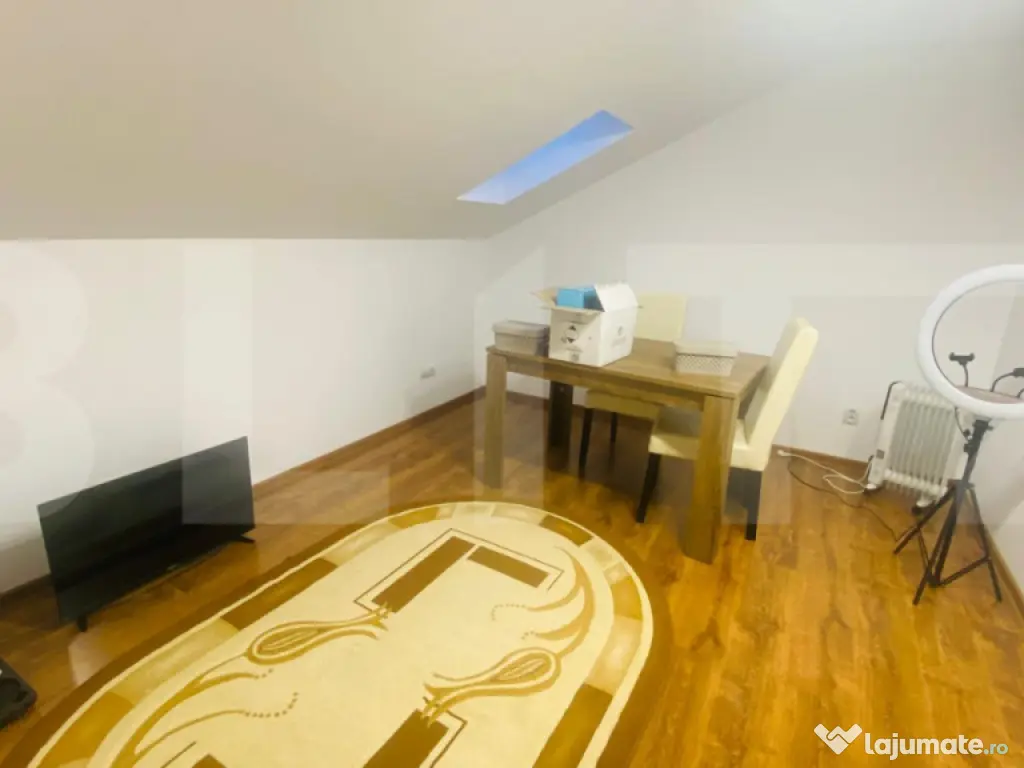 - Spațiu generos: Dispus pe etajul 3 și mansardă, apartamentul oferă zone distincte pentru relaxare, depozitare și lucru de acasă.