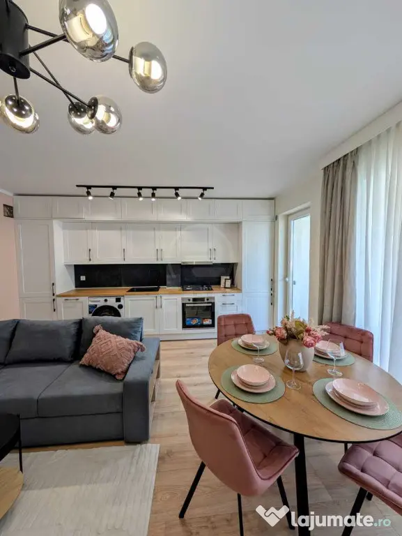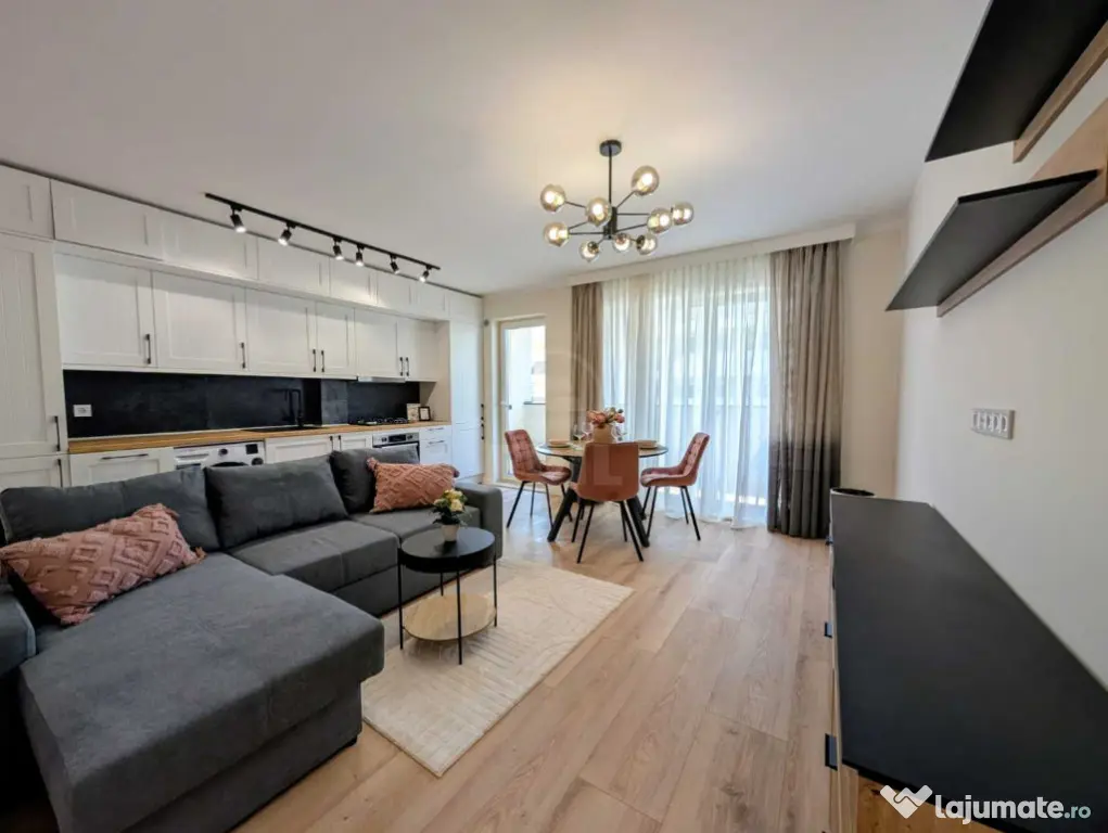 Vă prezentăm spre vânzare un apartament cu 3 camere situat în Florești, pe strada Eroilor, una dintre cele mai căutate zone datorită accesului facil la transportul în comun, magazine, farmacii și parcuri, ceea ce îl face ideal pentru o familie sau pentru investiție. Apartamentul se află într-o construcție nouă, la etajul 6 al unui imobil modern cu 8 etaje, și dispune de o suprafață utilă de 55 mp, completată de un balcon spațios de 9 mp cu orientare vestică, perfect pentru a vă bucura de apusuri frumoase. Compartimentarea este semidecomandată și cuprinde un hol, living cu bucătărie open-space, două dormitoare și o baie. Proprietatea se vinde complet mobilată și utilată cu electrocasnice de ultimă generație, fiind finisată la standarde înalte și nelocuită până în prezent – un mare avantaj pentru viitorul proprietar. În plus, apartamentul dispune de dotări moderne precum lift, interfon, televizor, frigider, aragaz și mașină de spălat. Pentru un plus de confort, există posibilitatea de a achiziționa și un loc de parcare în garajul subteran al blocului, la prețul de 7.000 euro TVA. Toate aceste beneficii, împreună cu localizarea excelentă pe Eroilor, transformă această locuință într-o oportunitate de neratat.ID 246743