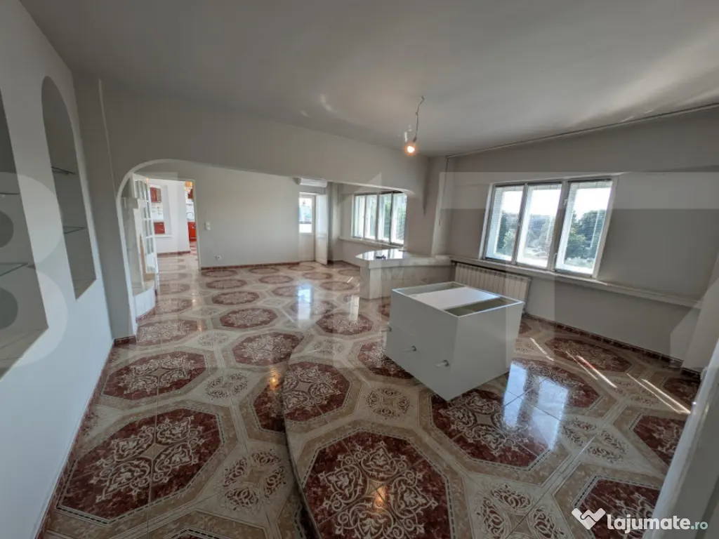 BLITZ vă propune spre vânzare un apartament cu adevărat remarcabil, rezultat din unificarea a două unități locative, înscrise într-un singur CF, ce oferă un spațiu generos și o compartimentare excelentă, rar întâlnită pe piață. Situat la etajul 3 din 10, apartamentul beneficiază de vederi panoramice pe mai multe direcții, atât către zona de giratoriu, cât și pe lateralele imobilului, oferind lumină naturală din abundență pe tot parcursul zilei. Compartimentare practică și echilibrată: - living amplu, ideal pentru relaxare și socializare - bucătărie separată, cu zonă dedicată pentru dining - 3 dormitoare spațioase și luminoase - 2 băi complet echipate: - baie principală cu cadă de dimensiuni generoase - baie secundară cu cabină de duș și boiler electric modern - holuri largi, spații de depozitare bine integrate + debara/anexă Suprafața impresionantă, poziționarea excelentă și potențialul de personalizare transformă această proprietate într-o alegere ideală pentru o familie care își dorește o locuință unică, confortabilă și bine compartimentată, sau pentru cei care caută un apartament cu valoare pe termen lung. Cod ofertă / ID BLITZ: P161498 Id intern: P161498 Confort: 1 Tip imobil: Bloc de apartamente Număr Băi: 2