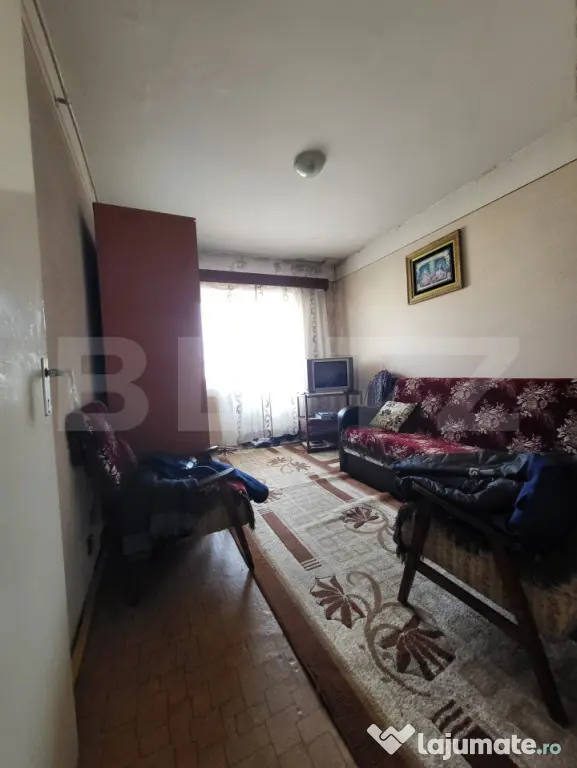 Blitz ofera spre vanzare apartament spațios, deocamandat, cu 4 camere in Turda, zona centrala. Acesta este situat la etajul 4 al unui imobil cu 4 nivele. Suprafata utila este de 80.5 mp iar compartimentarea se prezinta astfel: hol spatios, bucatarie, living, 3 dormitoare, 2 bai si balcoane cu sprafata de 11.76 mp. Confortul termic este asigurat de centrala proprie, blocul fiind izolat . Imobilul este situat într-o zona liniștită a orașului, iar in proximitatea apartamentului avem scoli, magazine, farmacii, parc. Apartamentul necesita renovare. Pentru mai multe detalii programeaza o vizionare!