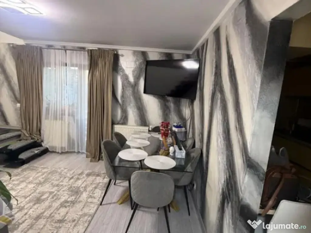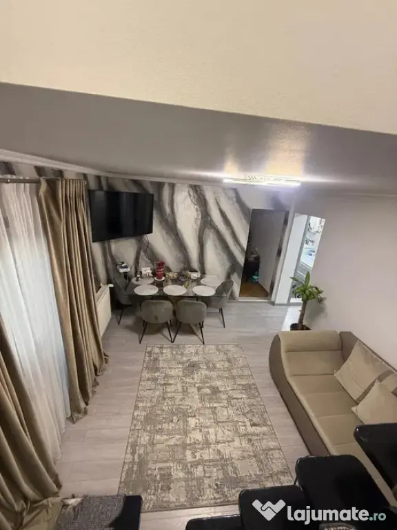 Agentia imobiliara Family va ofera spre vanzare un apartament cu 4 camere decomandate situat in zona Marasesti( etaj 5 + 6 + pod ), constructie din BCA si lemn, 2 scari interioare, renovat in 2023, tamplarie cu geamuri termopan, centrala termica, mobilat si utilat cum se observa si din poze. La parter este livingul cu acces la balcon de 6 m, baie mare, hol si bucatarie. La etaj sunt 2 dormitoare ( unul mic si unul mai mare ), dressing facut din al treilea dormitor ( cine doreste dupa preferinta il poate transforma din nou in dormitor ), camara, scara cu acces in pod (spatiu pentru depozitare ) ( ID 434 ) Confort: 1 Tip imobil: Bloc de apartamente