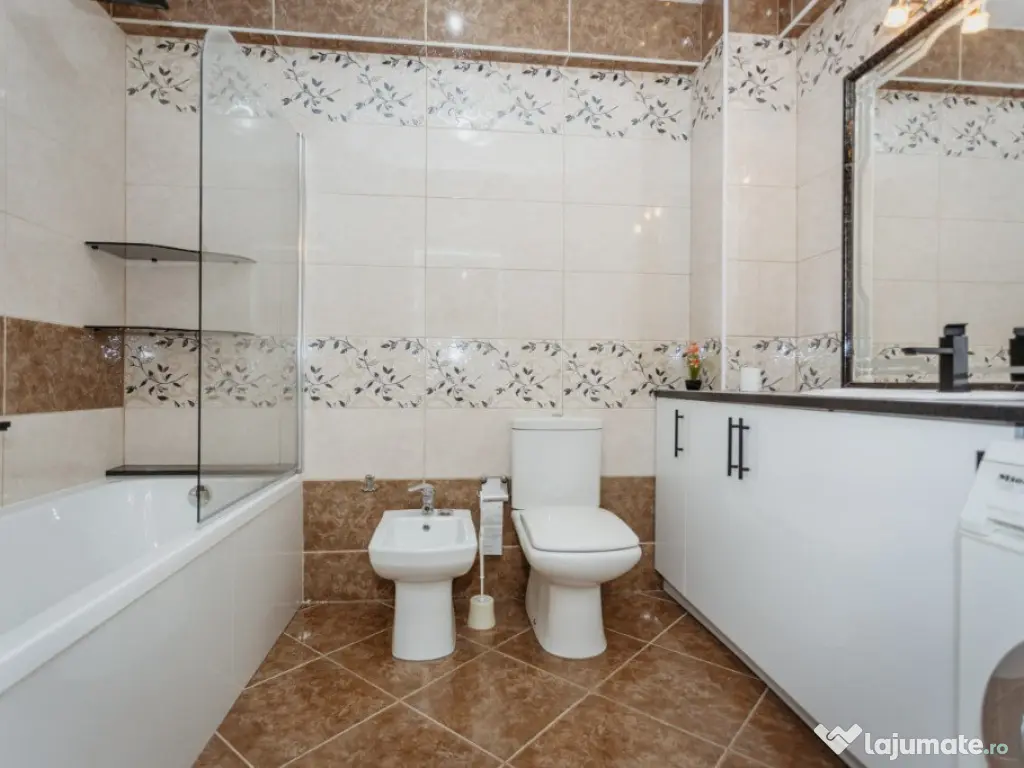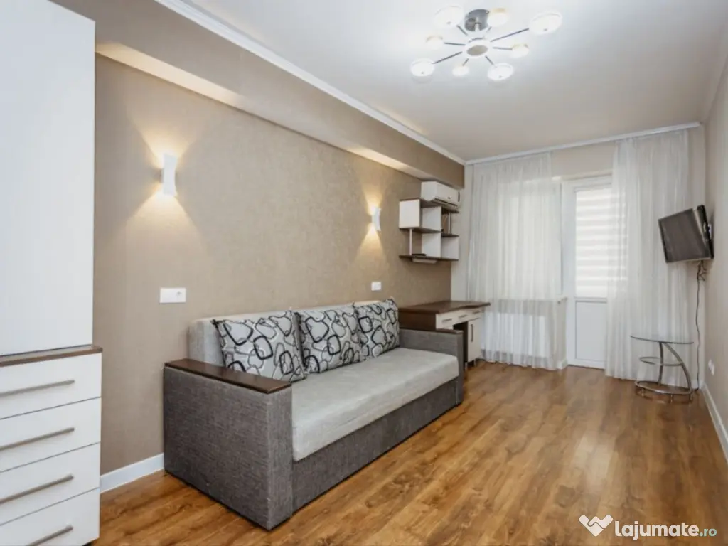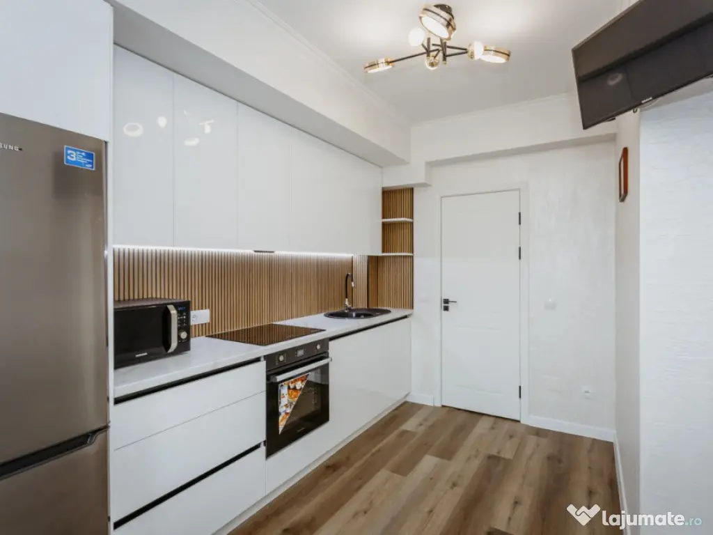 Ofer spre închiriere apartament cu 2 camere, 58mp, situat la etajul 4, într-un complex modern din zona Băneasa. Apartamentul este complet mobilat, dispune de aer condiționat, bucătărie open-space și o terasă spațioasă cu vedere panoramică. Se află la 8 minute de mers cu mașina până la Băneasa Shopping City și la 12 minute de stația de metrou Aurel Vlaicu. Zona este deosebit de liniștită, perfectă pentru familii și profesioniști. Confort: 1 Tip imobil: Bloc de apartamente