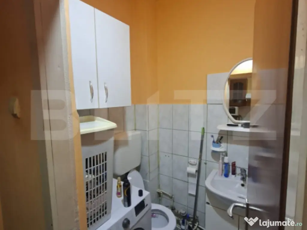 BLITZ va propune spre vanzare un apartament cu o camera, situat la etajul 1 intr-o zona excelenta. Avand 22 de metri patrati, este decomandat, foarte inteligent amenajat oferind suficient spatiu pentru confortul de zi cu zi. Acesta se vinde complet mobilat si utilat. Orientarea sud-vestica asigura o temperatura optima pe tot parcursul zilei, dar si o lumina care complementeaza atmosfera calda a apartamentului. Se afla in imediata apropiere a unui parc, respectiv a crisului, a mijloacelor de transport in comun, magazinelor, farmaciilor, restaurantelor. Hai la vizionare sa te convingi si tu! Cod ofertă / ID BLITZ: P168739 Id intern: P168739 Confort: 3 Tip imobil: Bloc de apartamente Număr Băi: 1