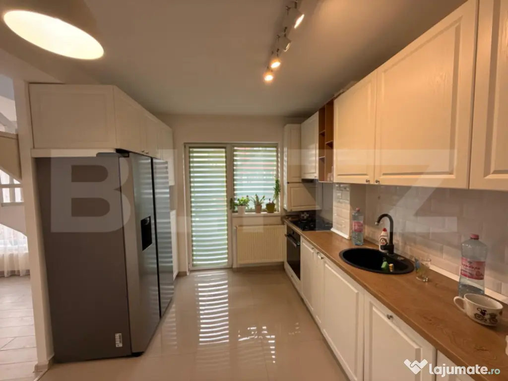 BLITZ va propune spre vânzare un apartament duplex modern, situat într-o zonă rezidențială apreciată din Sânpetru, cu acces rapid către Brașov. Proprietatea se remarcă prin spațiul generos, compartimentare eficientă și finisaje premium, fiind ideală pentru o familie care își dorește confort și funcționalitate fără compromisuri. Cu o suprafață utilă de 104 mp, apartamentul este dispus pe două niveluri și beneficiază de orientare sud-vestică, oferind lumină naturală din abundență pe tot parcursul zilei. Cele 3 balcoane completează armonios spațiile interioare, creând o legătură plăcută cu exteriorul. Compartimentare: Zona de noapte este formată din două dormitoare primitoare, ambele cu acces la balcon. Dormitorul matrimonial dispune de walk-in dressing, oferind un plus de confort și organizare. Zona de zi include un living spațios și luminos, ideal pentru relaxare sau socializare, precum și o bucătărie complet mobilată și utilată, cu balcon propriu. Dotări și beneficii: Electrocasnice premium incluse: Frigider Side-by-Side Mașină de spălat vase Mașină de spălat rufe 2-în-1 Uscător de rufe Loc de parcare inclus în preț Pod privat de 4 mp, ideal pentru depozitare Apartamentul se vinde complet mobilat și utilat, fiind o proprietate „la cheie”, pregătită pentru mutare imediată. Datorită orientării, costurile de întreținere sunt optimizate, iar atmosfera interioară este una caldă și primitoare. ???? O alegere excelentă pentru cei care caută un stil de viață modern, într-o zonă liniștită, aproape de Brașov. Cod ofertă / ID BLITZ: P163226 Id intern: P163226 Confort: 1 Tip imobil: Bloc de apartamente Număr Băi: 2 Nr. locuri parcare: 1