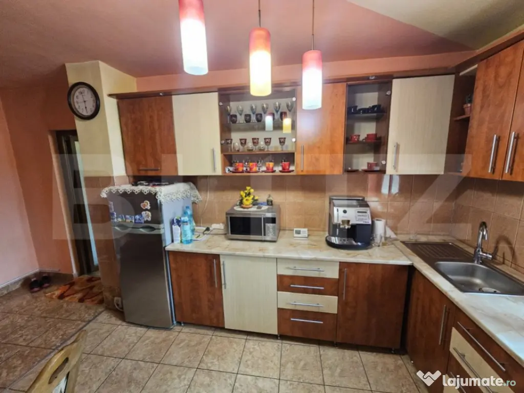 Blitz ofera spre vanzare apartament de 2 camere, in Baciu, zona strazii Magnoliei, care se bucura de un acces usor spre zona centrala, magazine in apropiere si alte puncte de interes. Apartamentul se preda finisat si mobilat la cheie, usa metalica la intrare si geamuri termopan, iar confortul termic este asigurat de centrala termica proprie. Suprafata utila a apartamentului este de 48 mp, avand doua camere decomandate, compartimentarea prezentandu-se astfel: o bucatarie foarte spatioasa echipata complet, cu toate electrocasnicele , o zona de intrare larga, luminoasa, doua dormitoare, o baie spatioasa cu geam si doua balcoane deschise. Cei care aleg sa locuiasca aici pot beneficia si de doua locuri de parcare in garaj ele fiind inchiriate de la primarie cu 200 lei/an, de asemenea apartamentul dispune si de o baxa de depozitare in suprafata de 20mp aflata in subsolul imobilului. Daca ce ti am prezentat ti se potriveste , te asteptam la vizionare ! Cod ofertă / ID BLITZ: P128760 Id intern: P128760 Confort: 1 Tip imobil: Bloc de apartamente Număr Băi: 1