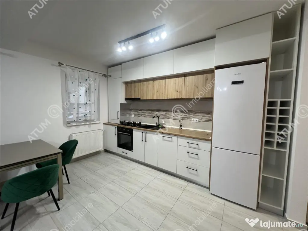 De vanzare apartament cu 2 camere decomandate, complet mobilat si utilat, cu loc propriu de parcare, in suprafata totala de 72.00 mp, orientat EST-VEST, localizat in Selimbar zona Triajului. Apartamentul este situat la parterul inalt al unui imobil edificat in anul 2021, cu doar 3 etaje si 2 apartamente pe palier si totalizeaza 8 apartame in intreg imobilul. Imobilul este edificat pe structura din beton si zidarie din caramida de 30 cm si izolat termic exterior cu polistiren expandat de 10 cm, acoperis din tigla si interfon pentru accesul securizat in imobil. Orientarea apartamentul este una prielnica fiind EST-VEST avand in vedere faptul ca este insorit pe intreaga perioada a zilei atuu vizibil in facturile scazute de la gaz si energie electrica. Locuinta masoara 59,70 mp utili, aceasta fiind alcatuita din camera de zi tip open space cu bucatarie de 32,28 mp care ofera un spatiu generos si aerisit dar cu usurinta pot fi separate intr-un living de 22,48 mp si o bucatarie inchisa de 9,80 mp, dormitorul generos de 15,64 mp, baia de 5,03 mp dotata cu geam de aeirsire si cada, debara de 2,36 mp unde este pozitionata masina de spalat rufe dar care permite amenajarea unei bai de serviciu avand deja racorduri de apa si canalizare trase pe pozitie si un hol de 4,40 mp unde este amenajata zona de primire cu pantofar si cuier. Parcarea se realizeaza pe propriul loc de parcare vizibil din apartament. Apartamentul se preda deja amenajat- mobilat si utilat si consta in: Din punct de vedere al finisajelor si al dotarilor locuinta beneficiaza de: centrala propie marca Ariston in condensatie cu instalatie din PPR si calorifere din otel termostatate, instalatie electrica din cupru, tamplarie PVC cu geam termopan si zone vitrate generoase, usa metalica de acces in apartament, usi interioare din lemn, pardoseli placate cu parchet laminat de 12 mm in camera de zi si dormitor, gresie in bucatarie, baie, hol si debara iar faianta aplicata pe peretii din baie, zugraveli in vopsea lavabila alba, prize si intrerupatoare marca Schneider, obiecte sanitare, corpuri de iluminat moderne. Din punct de vedere al mobilierului apartamentul se preda cu mobilier de bucatarie realizat pe comanda din MDF infoliat si electrocasnice incastrate ( plita pe gaz, cuptor electric, frigider, masina de spalat vase, hota) si loc de luat masa, camera de zi este amenajata cu canapea, mobilier specific livingului cu multiple spatii de depozitare si TV, dormitorul complet amenajat ( pat, noptiere, dressing si comoda ), baie complet amenajata si masina de spalat rufe in debaraua amenajata cu polite destinate depozitarii. Valoarea de achizitie este de 111.000 euro negociabil, acesta poate fi achizitionat si prin accesarea unui credit bancar. ID intern: 3258. Confort: 1 Tip imobil: Bloc de apartamente Număr Băi: 1 Posibilitate parcare: Da Nr. locuri parcare: 1
