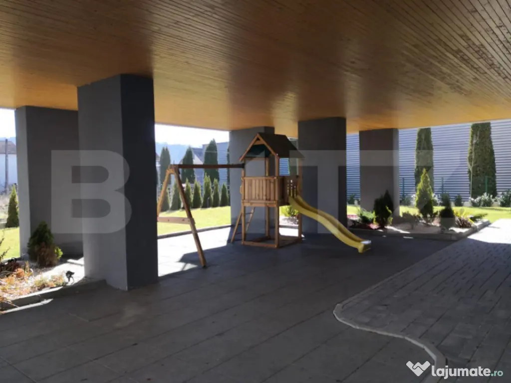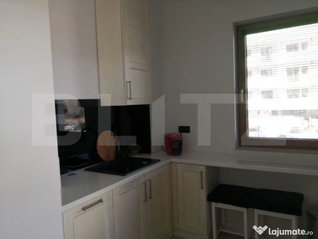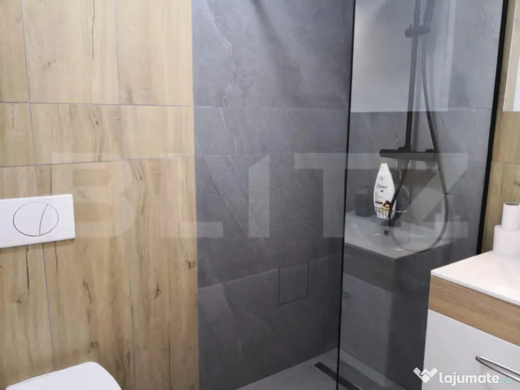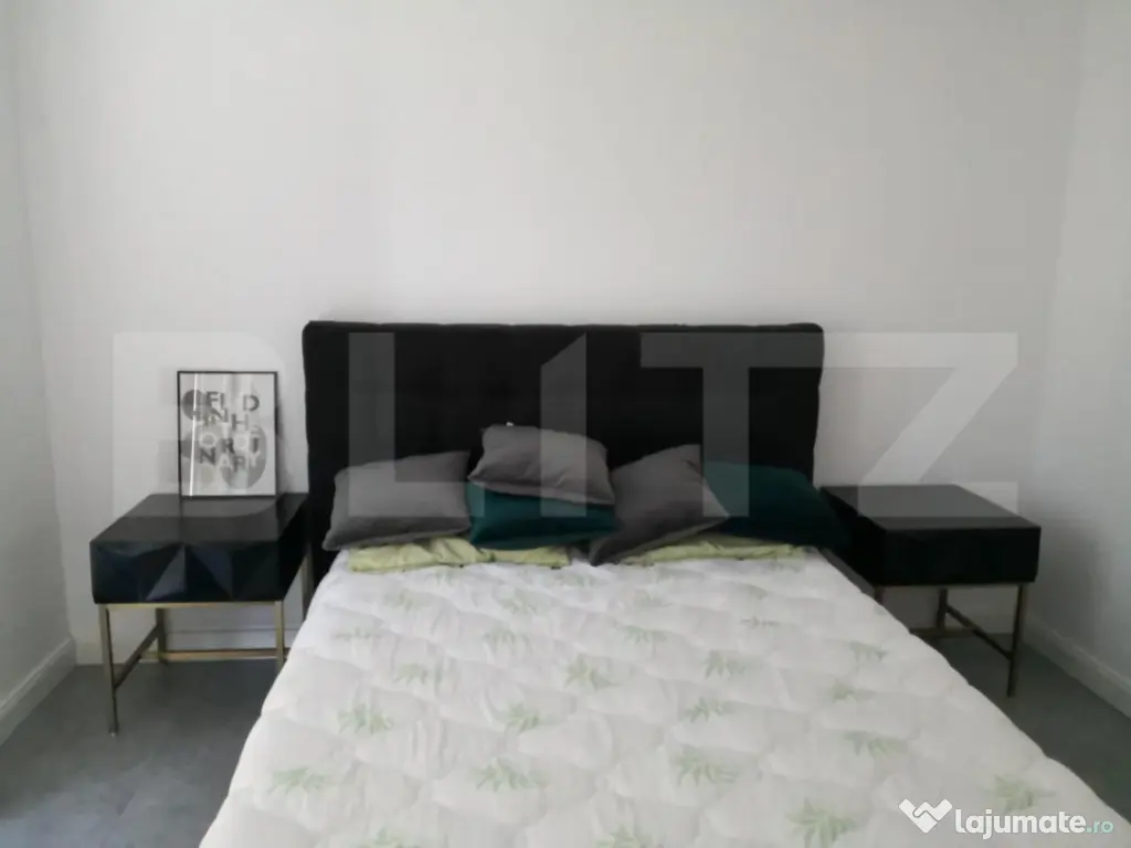 Blitz va propune spre vanzare un apartament compus astefl: hol, living cu bucatarie si cu iesire spre balcon, dormitor, dormitor matrimonial cu baie si dresing si baie. Apartamentul este situat intr-o zona foarte buna a orasului la etajul 1 al unui bloc constuit in anul 2021 aproape de centul comercial, la 3 minute de centru. La iesirea din bloc se afla un spatiu de joaca pentru copii exterior, iar in proximitate se afla un spatiu de joaca pentru copii interior. Cod ofertă / ID BLITZ: P101468 Id intern: P101468 Confort: 1 Tip imobil: Bloc de apartamente Număr Băi: 2 Nr. locuri parcare: 1