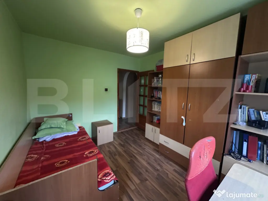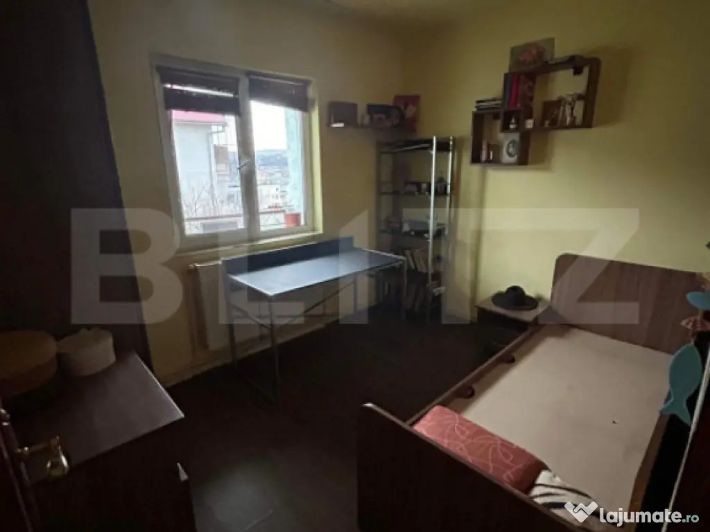 Blitz vă prezintă un apartament de 4 camere, amplasat într-un bloc reabilitat termic din zona Standard, Dej – o locuință spațioasă, luminoasă și gândită practic pentru viața de zi cu zi. Compartimentare: living generos, trei dormitoare, bucătărie, două băi, debara, cămară și două balcoane deschise. Fiecare încăpere are dimensiuni echilibrate și lumină naturală din plin, oferind o atmosferă plăcută și aerisită. Suprafață utilă: 77,5 mp Suprafață balcoane: 7,4 mp Etaj: 3 din 4 Izolație: bloc izolat la exterior și interior Apartamentul se vinde parțial mobilat și utilat. Un spațiu potrivit pentru o familie care caută o locuință completă – cu camere bine proporționate, confort termic și o poziționare practică. Pentru mai multe detalii sau pentru a programa o vizionare, contactați-ne. Cod ofertă / ID BLITZ: P155040 Id intern: P155040 Confort: 1 Tip imobil: Bloc de apartamente Număr Băi: 2