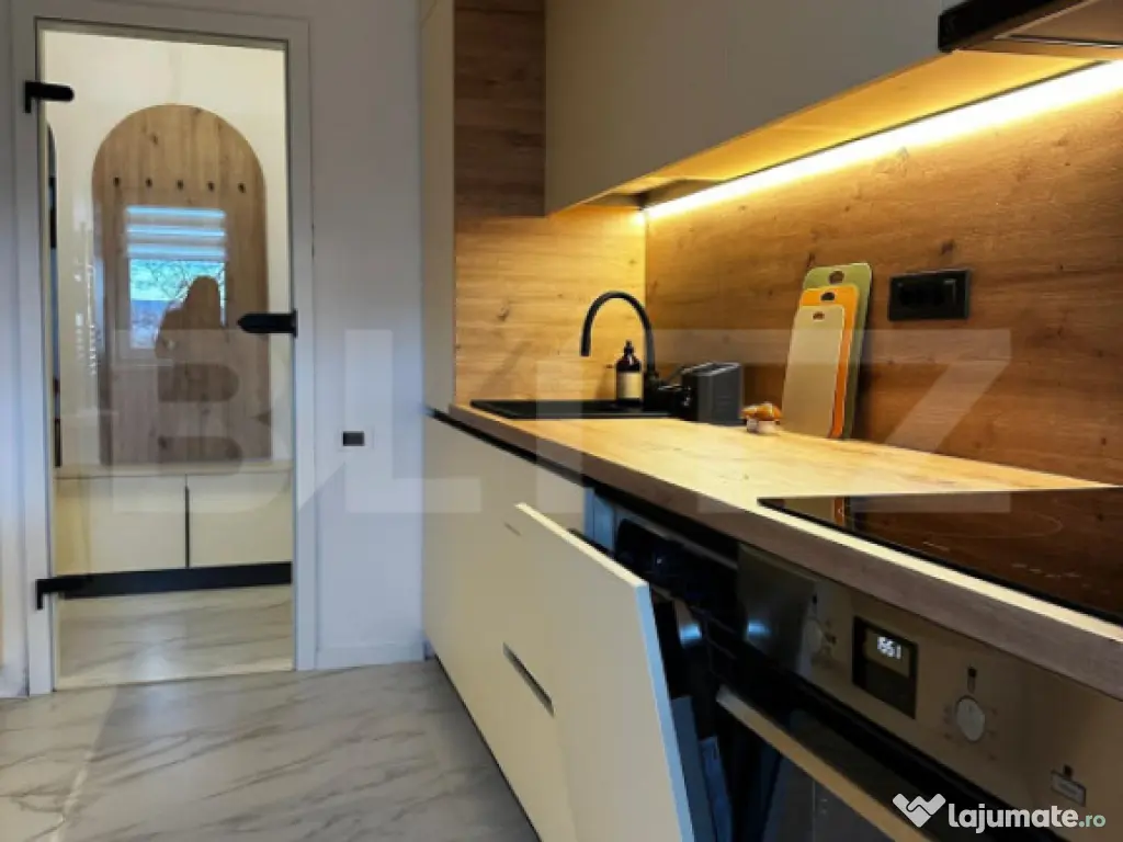Finisajele sunt moderne, iar spațiul a fost optimizat de un arhitect.