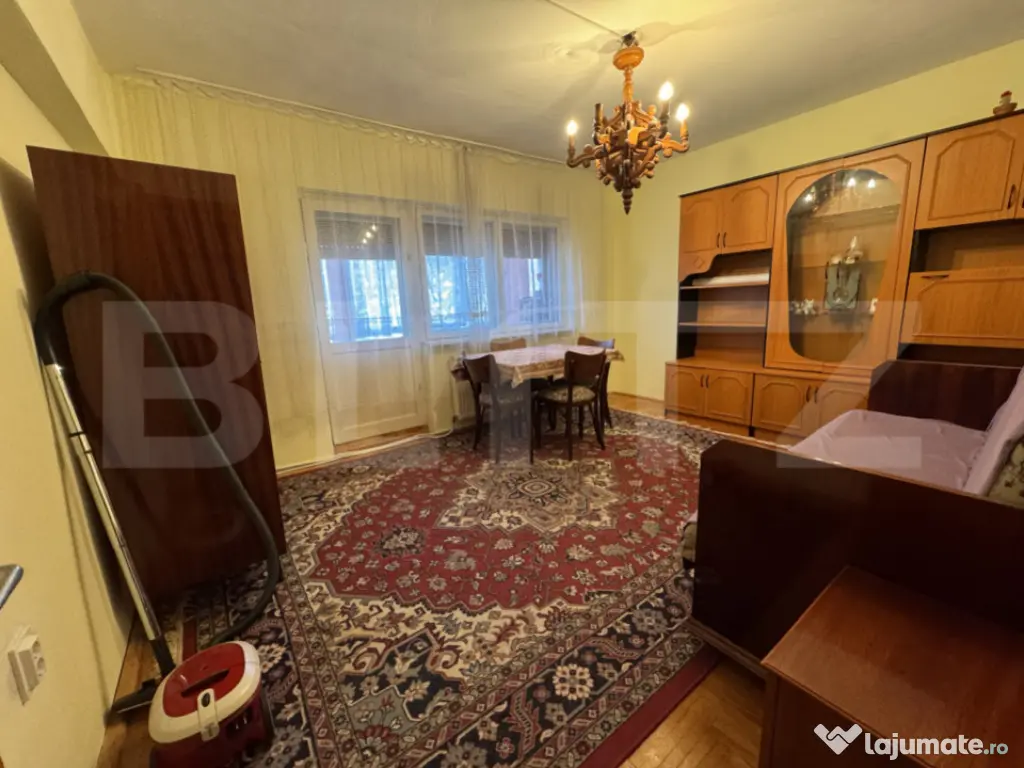 Blitz oferă spre închiriere un apartament spațios cu 3 camere, situat într-o zonă liniștită și bine poziționată, aproape de mijloace de transport, magazine și alte puncte de interes. Apartamentul este complet mobilat și utilat, gata pentru mutare imediată. Dispune de: • Living luminos și primitor • Două dormitoare confortabile • Bucătărie complet echipată (frigider, plită, cuptor, mașină de spălat, etc.) • Baie • Balcon închis, perfect pentru relaxare sau spațiu suplimentar de depozitare Loc de parcaresituat chiar lângă imobil. Cod ofertă / ID BLITZ: P154974 Id intern: P154974 Confort: 1 Tip imobil: Bloc de apartamente Număr Băi: 1