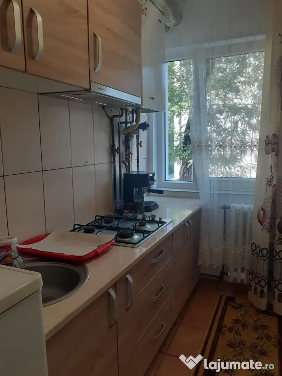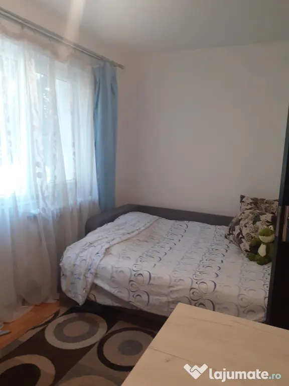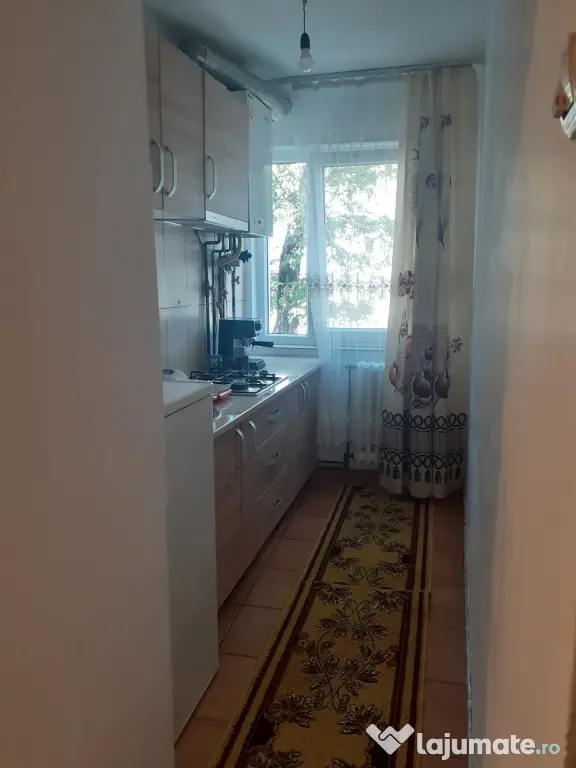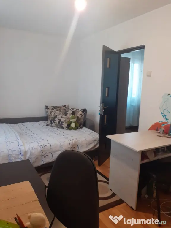 Apartament de inchiriat direct de la proprietar.Inchiriez apartament cu 2 camere,hol,bucatarie,baie,balcon inchis,bloc izolat pe exterior,suprafata totala 43 mp,Bistrita,str,Artarilor,et.1,cu cheltuieli mici,vecini buni si seriosi,scara curata,parc in fata blocului,dotat cu mobilier camera mare,mobilier camera mica,cuier cu pantofar in hol,mobilier in bucatarie,vesela,tacamuri,plita pe gaz,frigider cu congelator,cuptor cu microunde,masina de spalat rufe,televizor,centrala pe gaz,birouri,scaune,aspirator.Chiria este 1500 lei,se poate inchiria imediat,chiar si pt.o perioada mai lunga.Se poate intocmi contract.Apartamentul este situat linga statia de taxi din Decebal,la 1min.pina la piata Decebal,magazin Profi,3 min.pina la Liceul Liviu Rebreanu.10 min pana la gara.Cautam persoana( e) serioasa.Merita vazut.