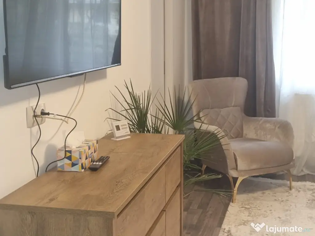 Apartamentul este situat la parter.atat mobilierul din sufragerie cat si televizorul sunt noi.iar statia de autobuz Caraiman la doar 2minute de bloc