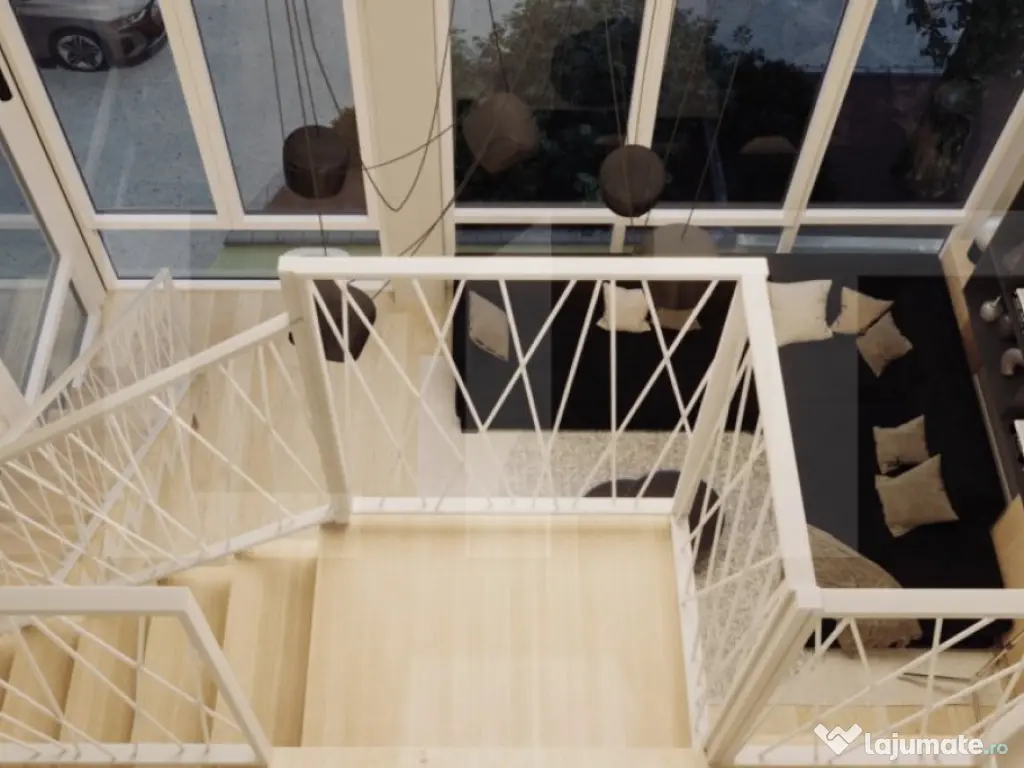 Blitz va propune un apartament spațios și modern, 94 mp, situat la etajul 2, cu scară interioară și compartimentare practică: 3 camere, 2 băi. Finisaje premium: încălzire în pardoseală, pereții dinspre strada, integral din sticlă cu rulouri electrice, 2 aparate de aer condiționat, videointerfon, centrală proprie pe imobil, curent trifazat. Design contemporan, realizat de arhitect – lumină naturală din plin și priveliște panoramica. Ideal pentru locuit sau investiție (zonă cu cerere mare pentru închiriere) Pozele sunt randări – se vinde nemobilat, dar cu finisaje complete (gresie, faianță, parchet, uși, obiecte sanitare). Parcare privata optional: Pret 10000 E Cod ofertă / ID BLITZ: P145883 Id intern: P145883 Confort: 1 Tip imobil: Casă/Vilă Număr Băi: 2 Nr. locuri parcare: 1